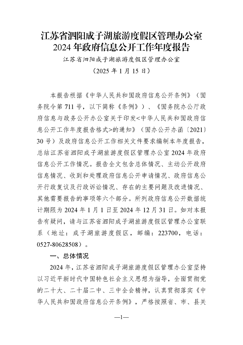 江蘇省泗陽成子湖旅游度假區(qū)管理辦公室2024年政府信息公開工作年度報告