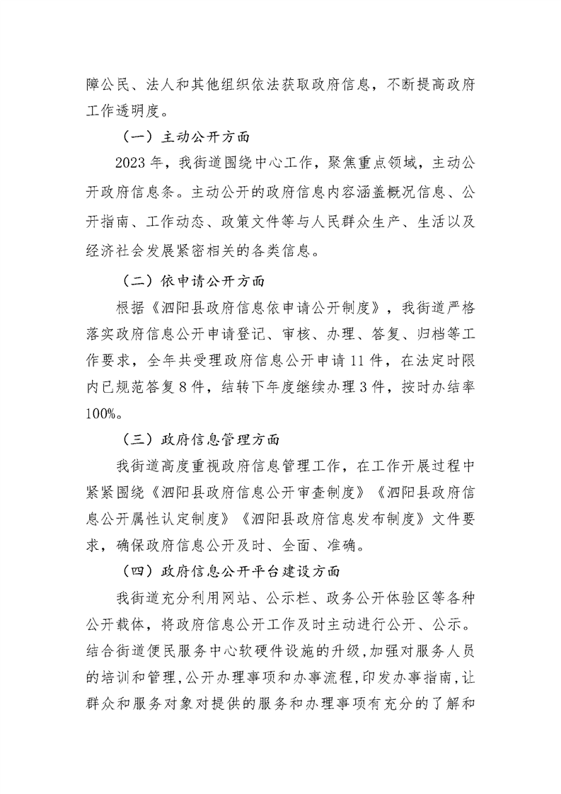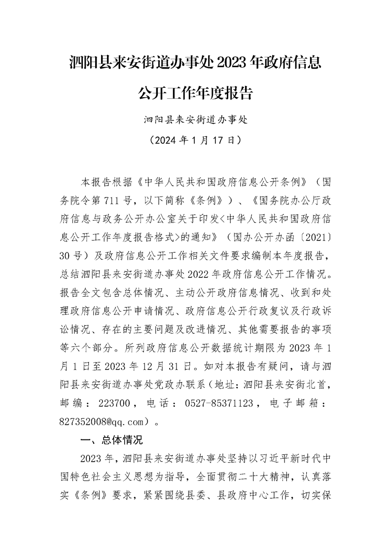 泗陽縣來安街道辦事處2023年政府信息公開工作年度報告