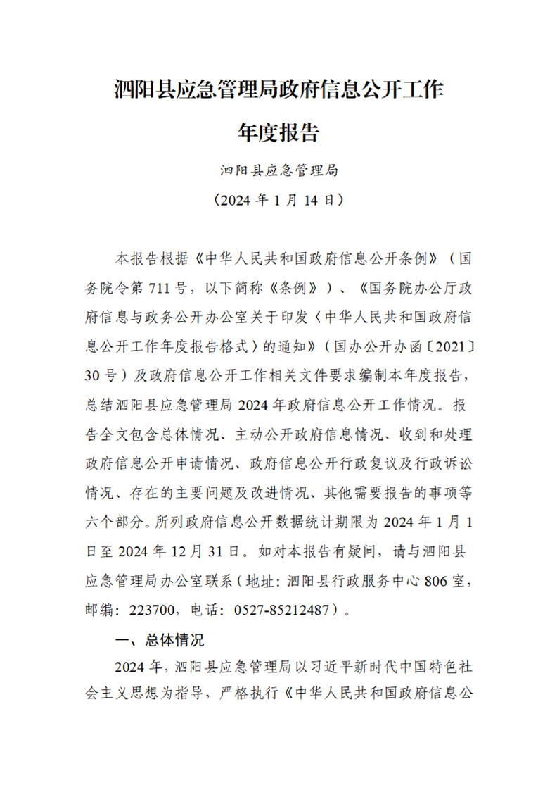泗陽縣應急管理局2024年政府信息公開工作年度報告