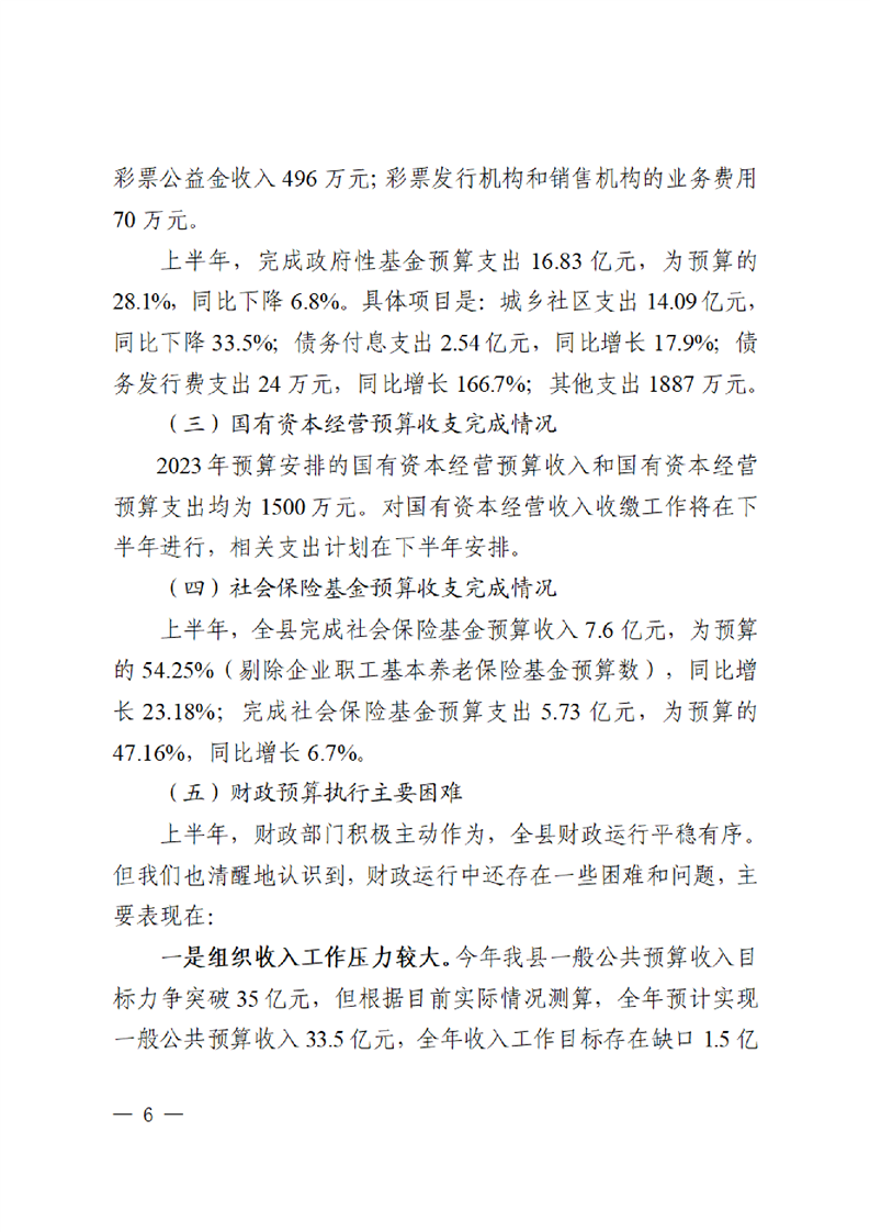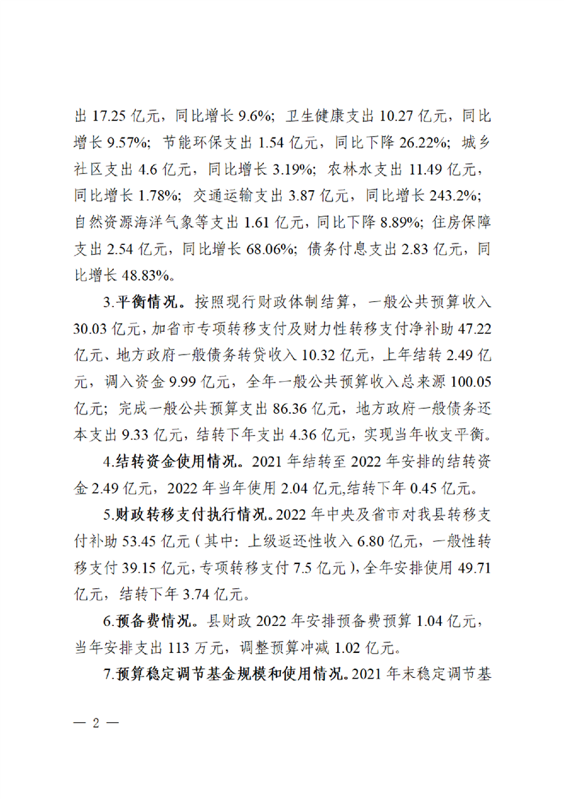 關于泗陽縣2022年財政決算(草案)和2023年上半年財政預算執(zhí)行情況的報告