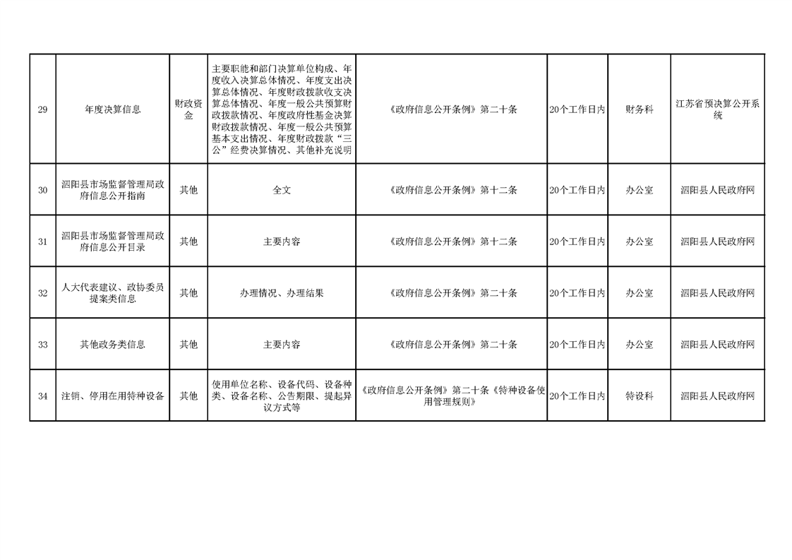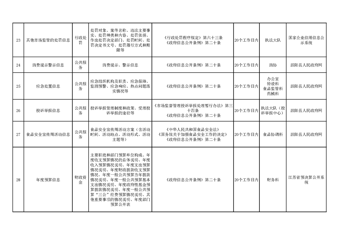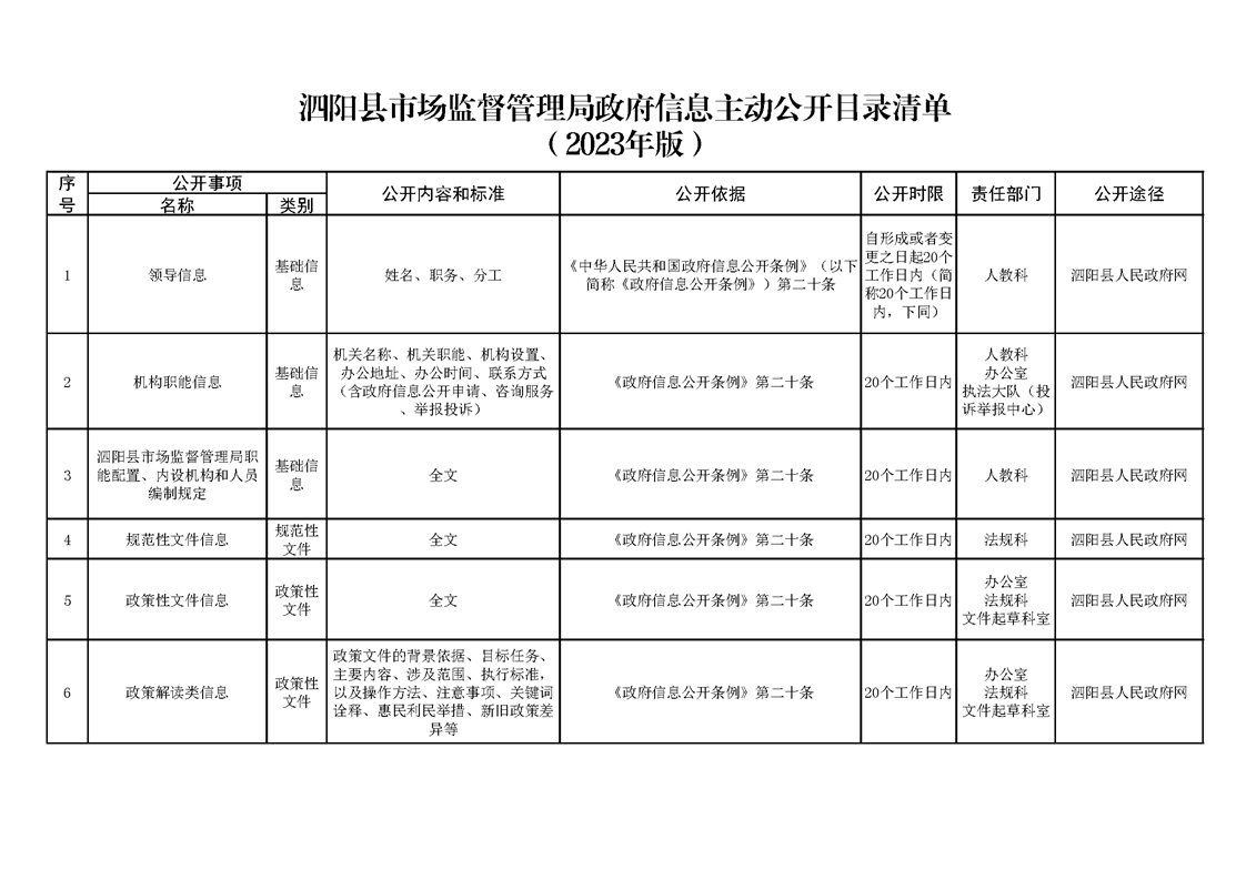 泗陽縣市場監督管理局政府信息主動公開目錄清單(2023)
