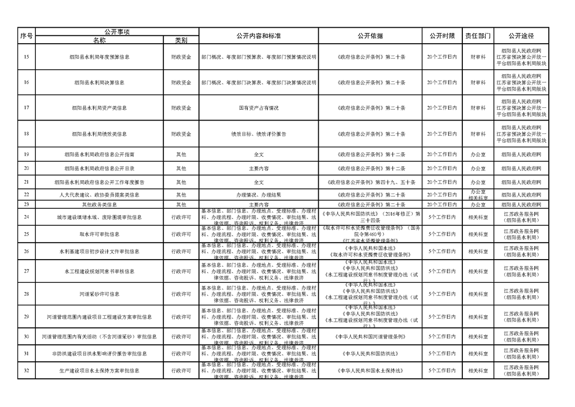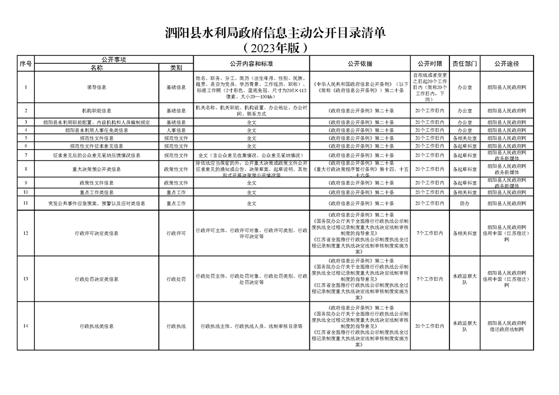 泗陽縣水利局政府信息主動公開目錄清單(2023)