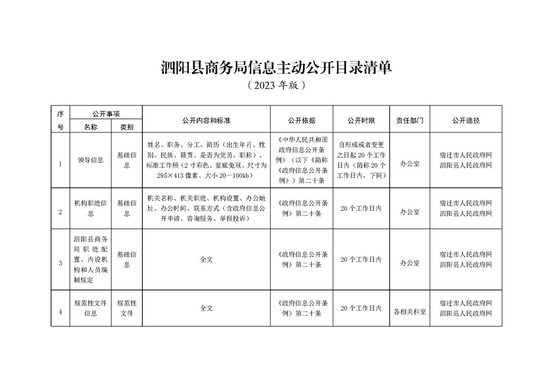 泗陽(yáng)縣商務(wù)局政府信息主動(dòng)公開(kāi)目錄清單(2023)