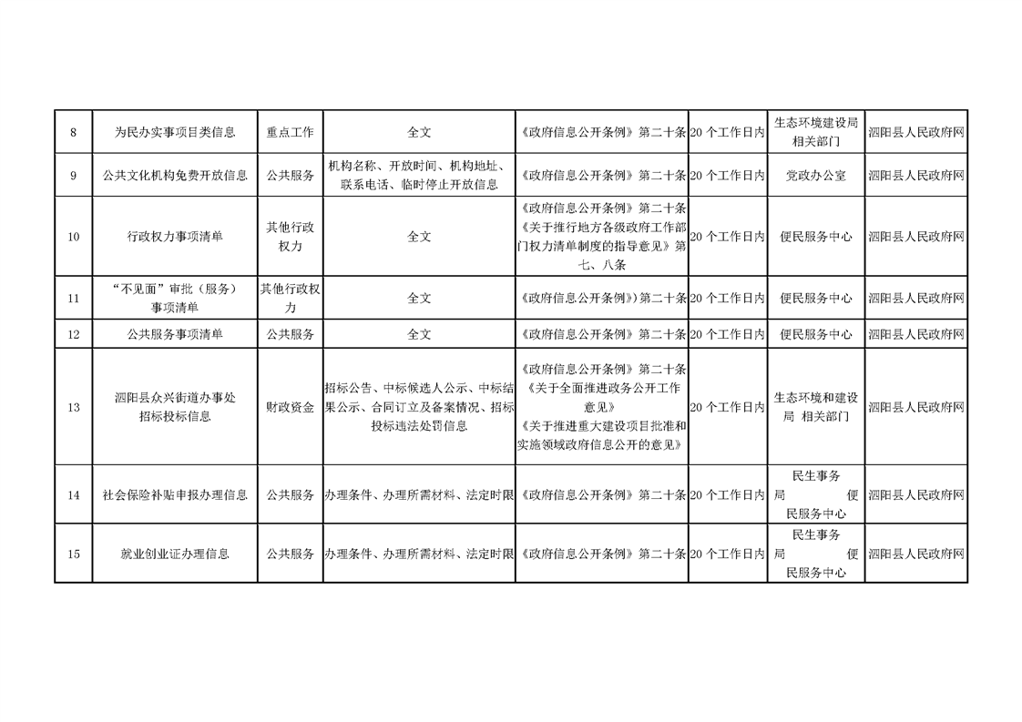 泗陽縣眾興街道辦事處政府信息主動公開目錄清單(2023)