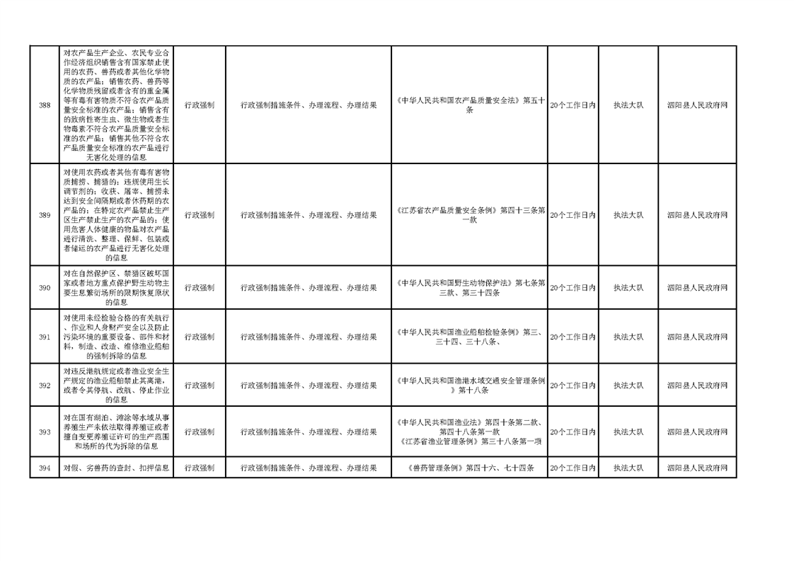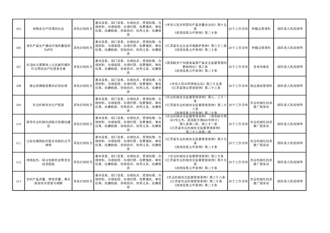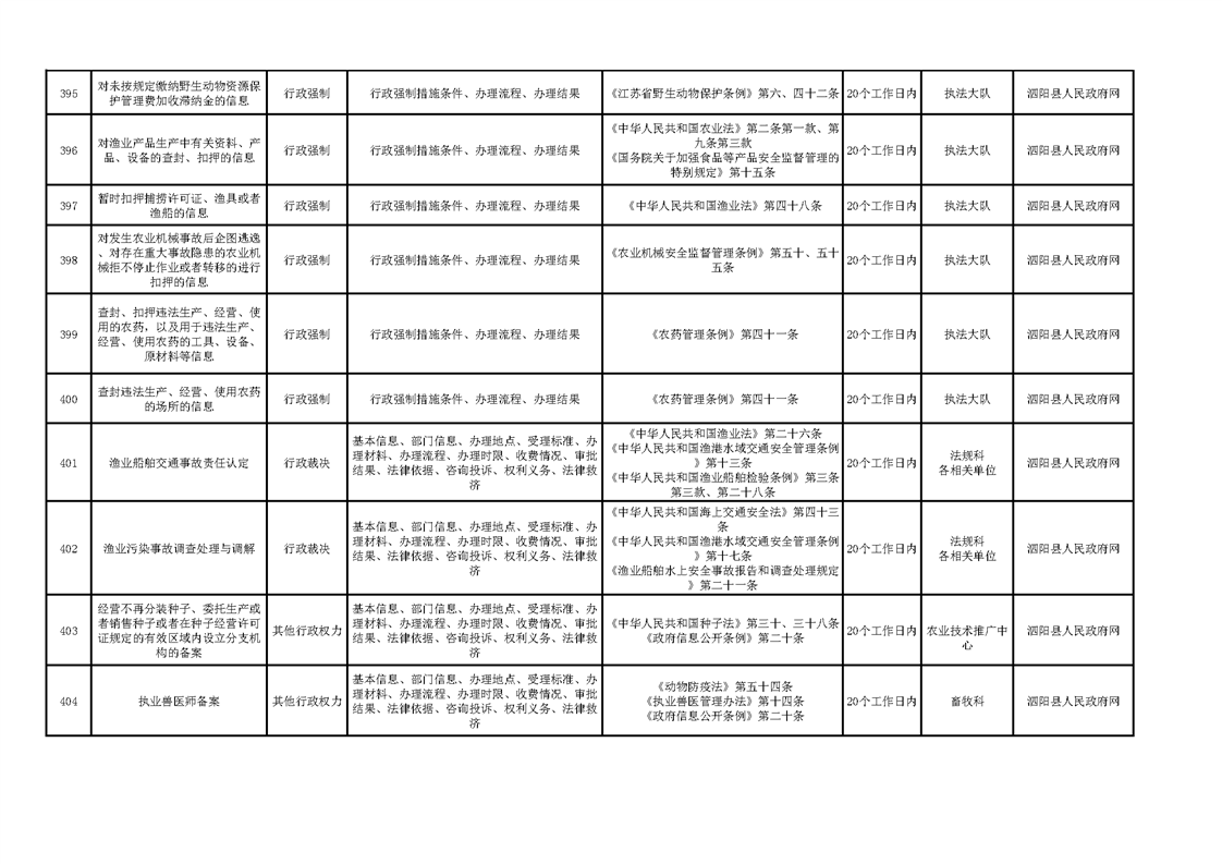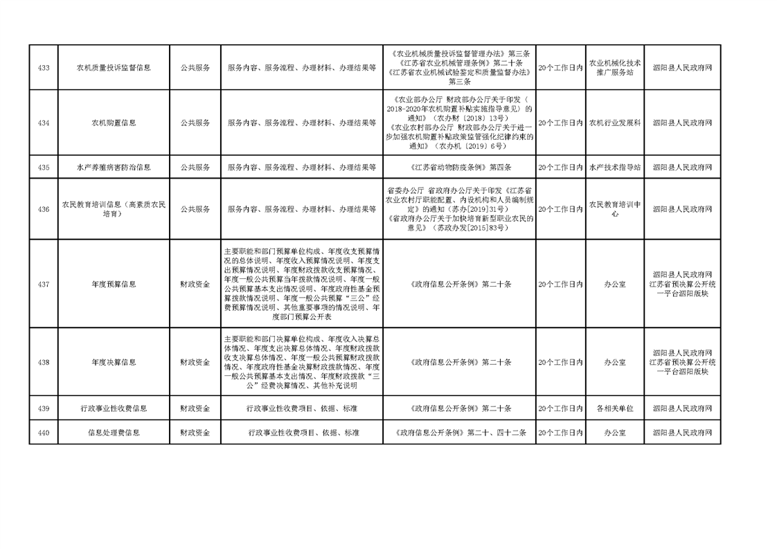 泗陽縣農業農村局政府信息主動公開目錄清單(2023)