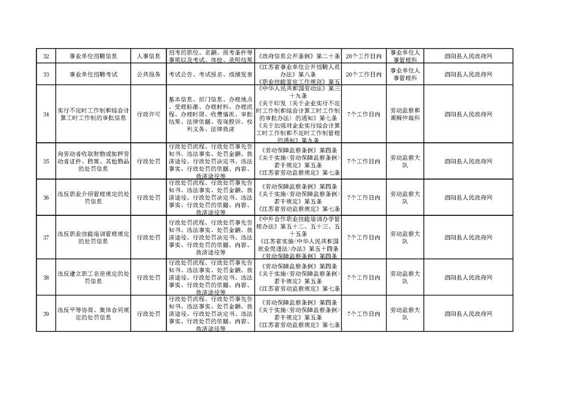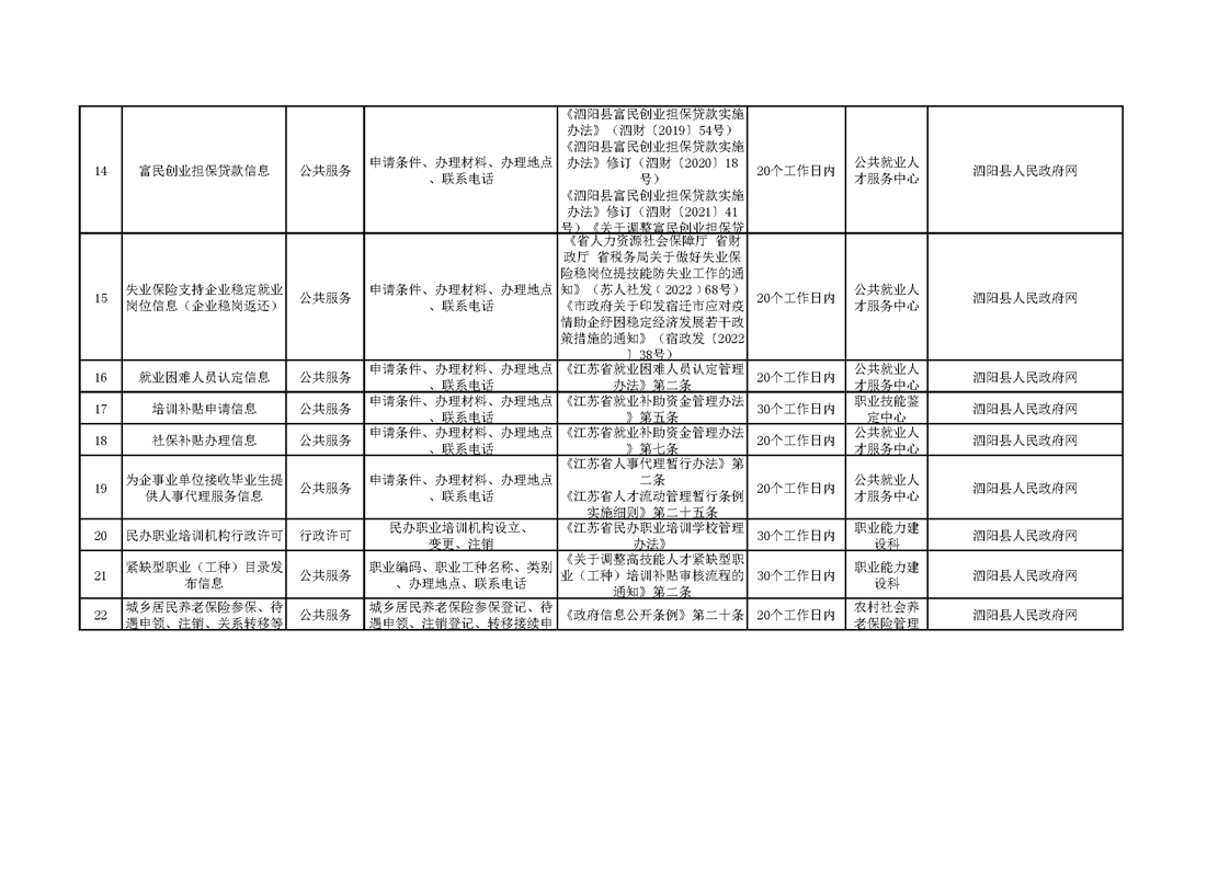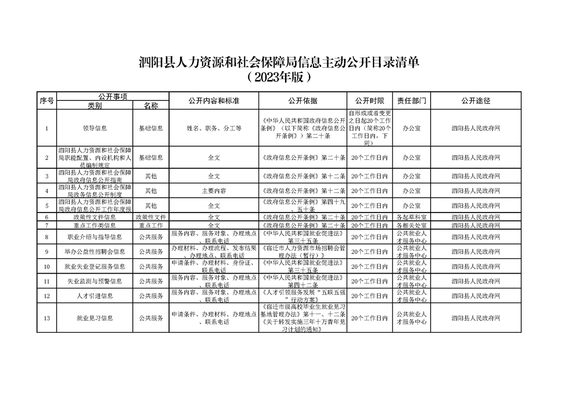 泗陽縣人社局政府信息主動公開目錄清單(2023)