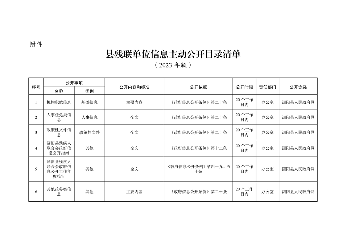 泗陽縣殘聯政府信息主動公開目錄清單(2023)
