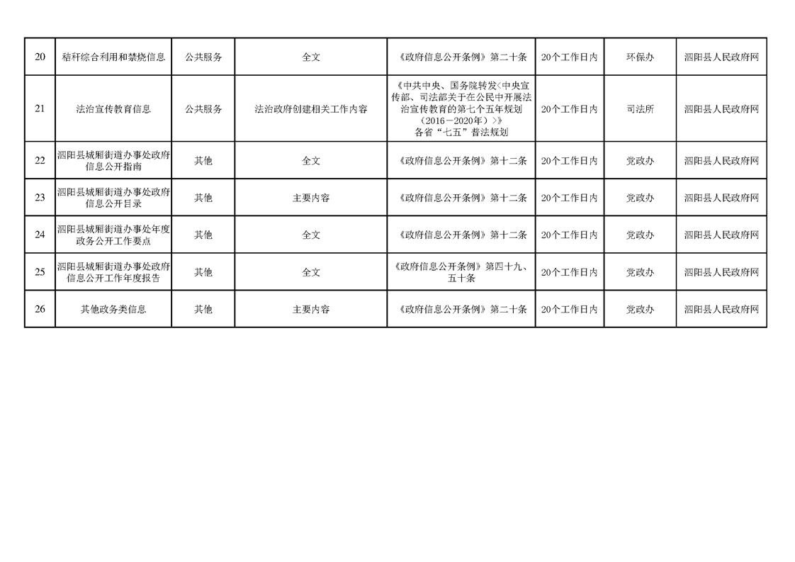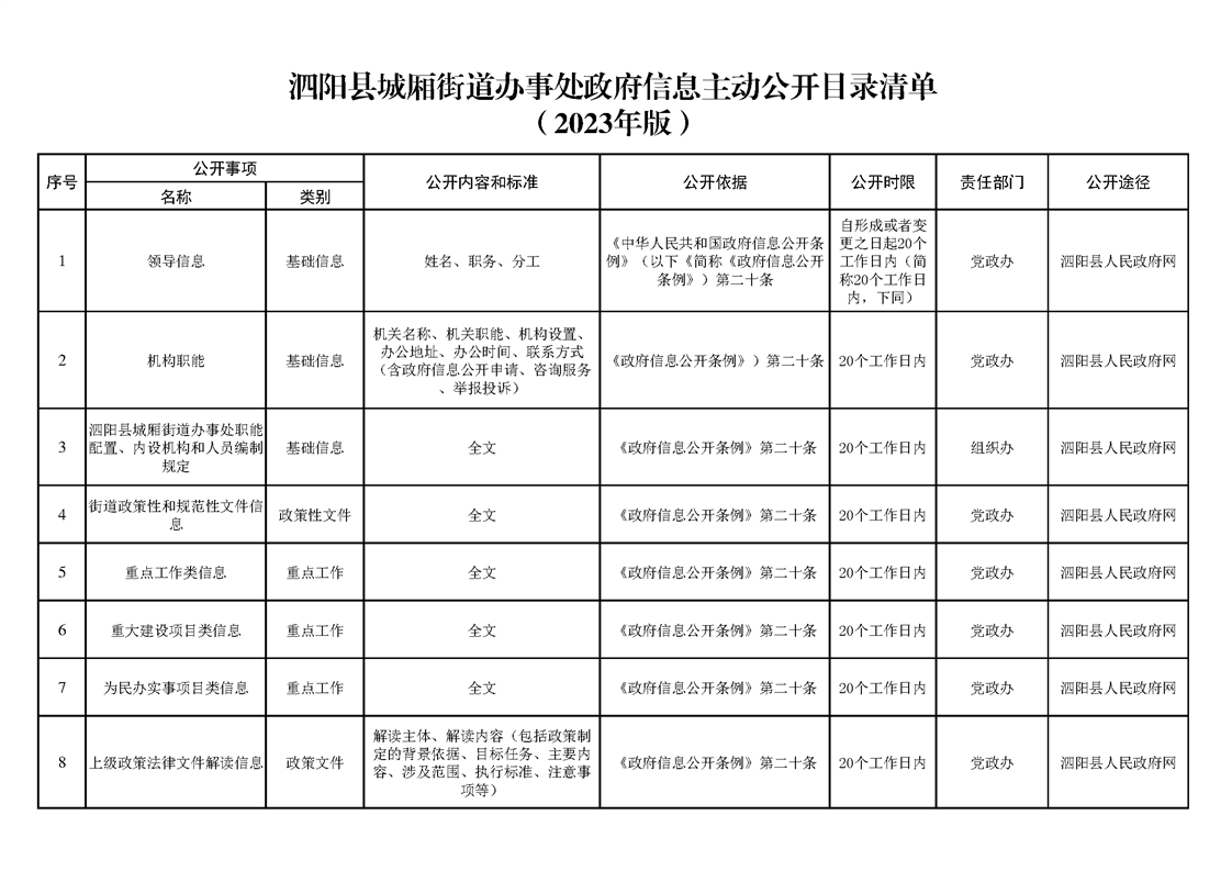泗陽縣城廂街道辦事處政府信息主動公開目錄清單(2023)