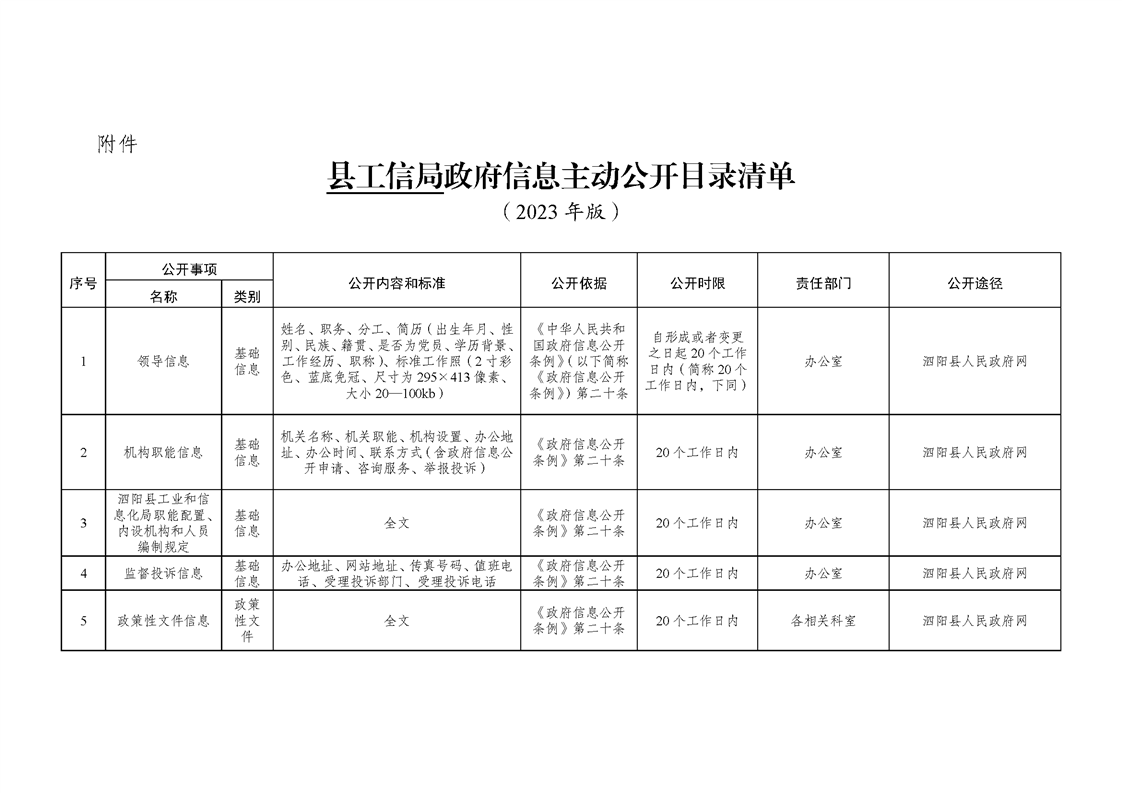 泗陽(yáng)縣工信局政府信息主動(dòng)公開目錄清單(2023)