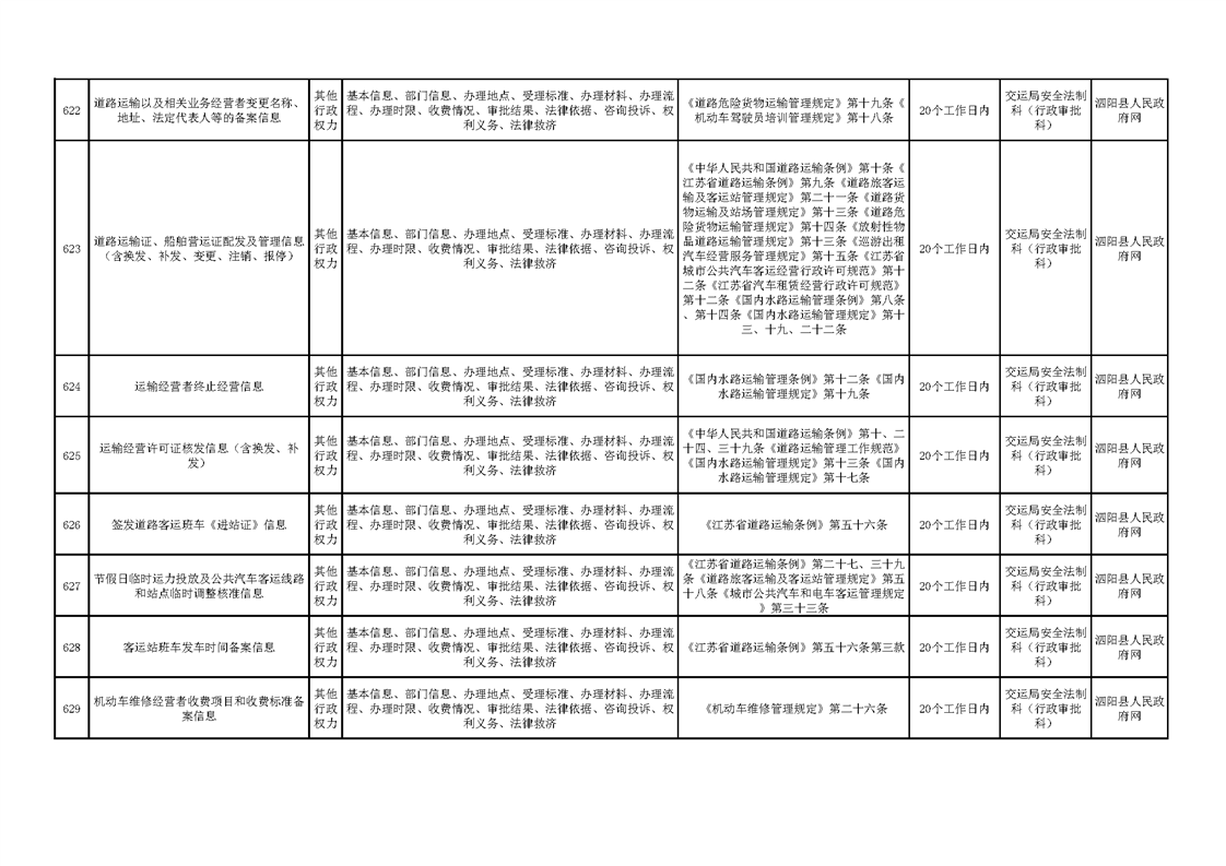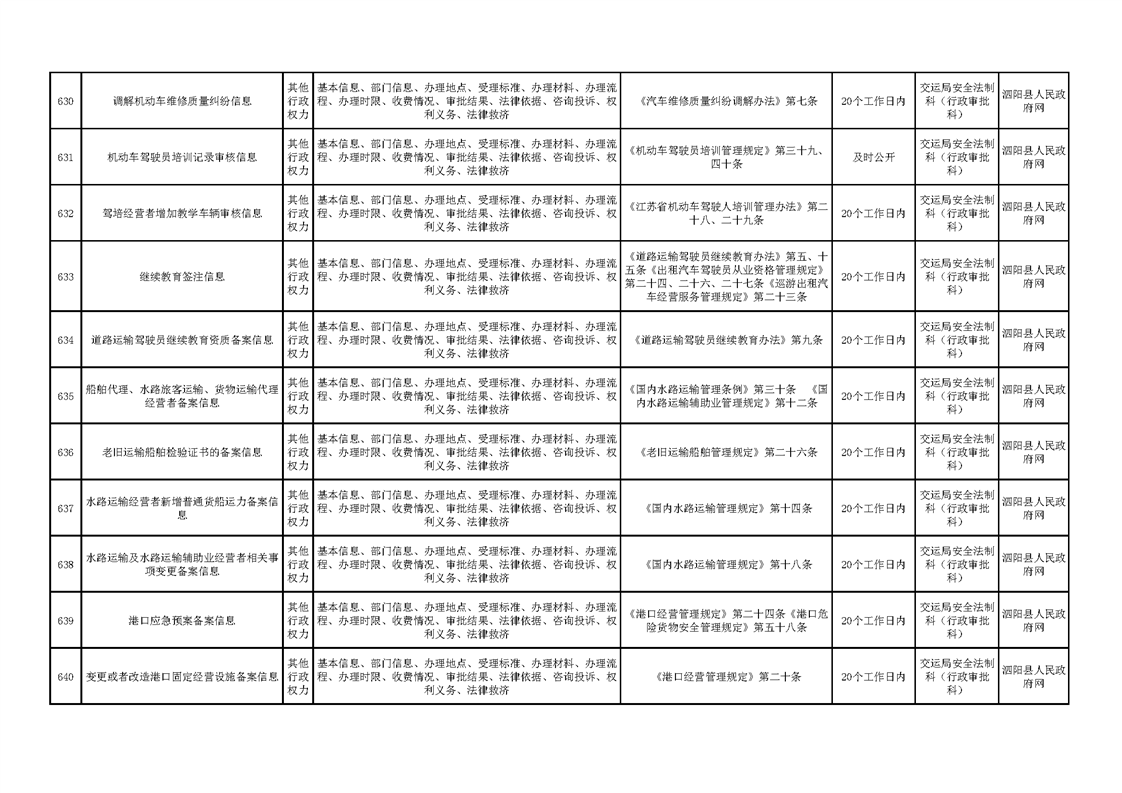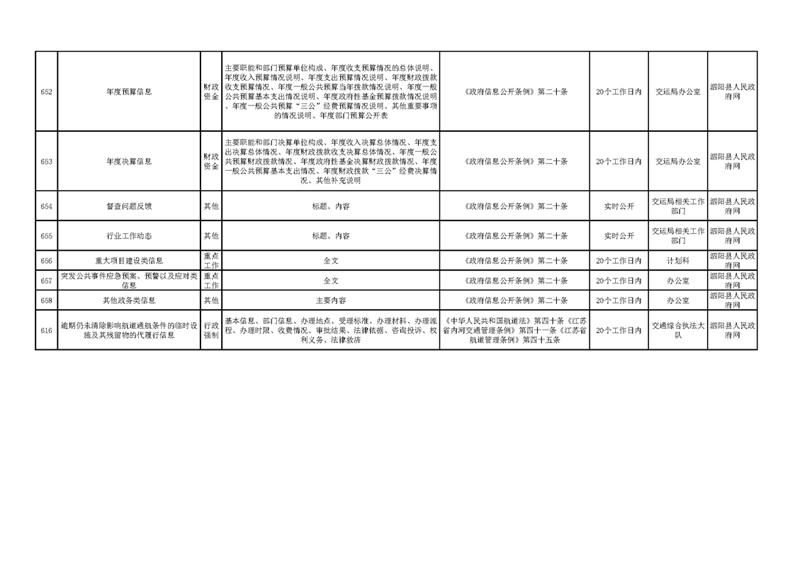 泗陽縣交通運輸局政府信息主動公開目錄清單(2023)