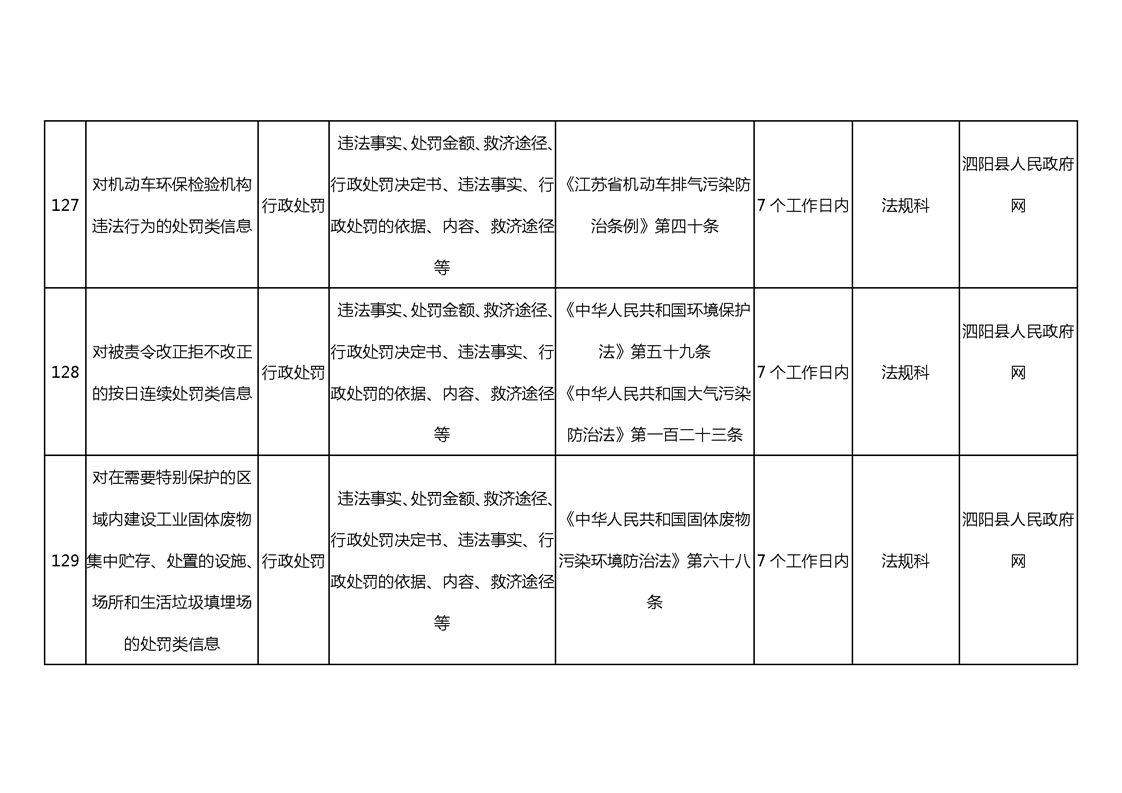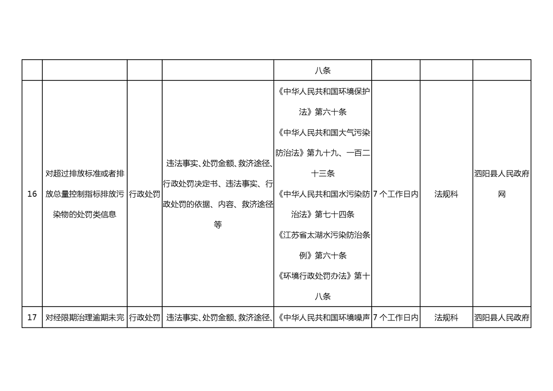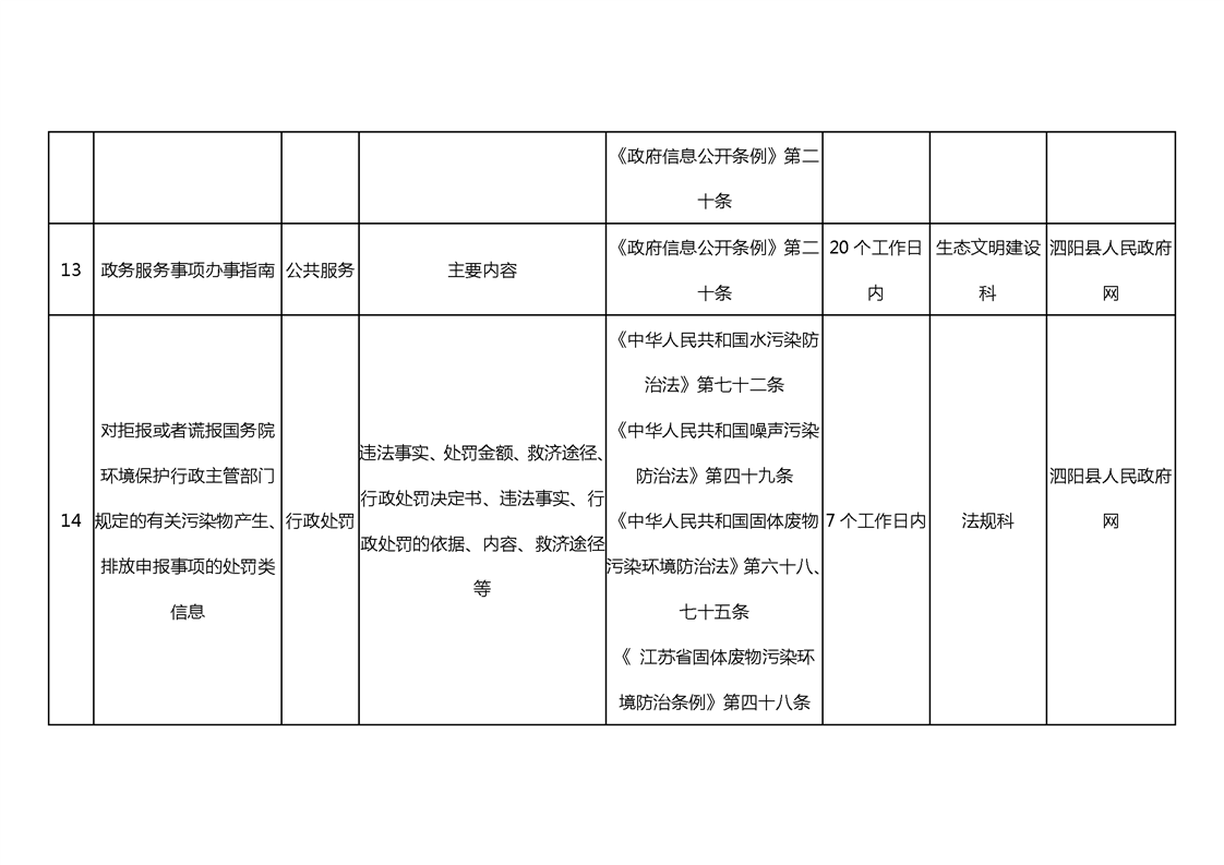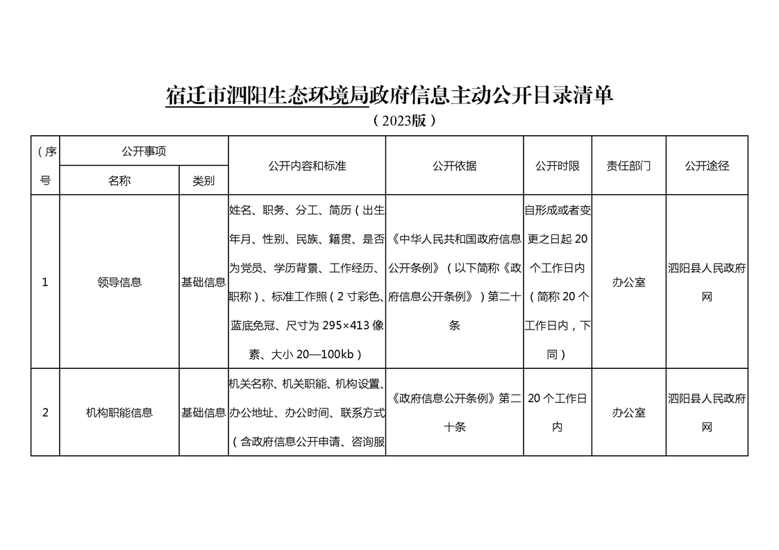 宿遷市泗陽生態(tài)環(huán)境局政府信息主動公開目錄清單(2023)