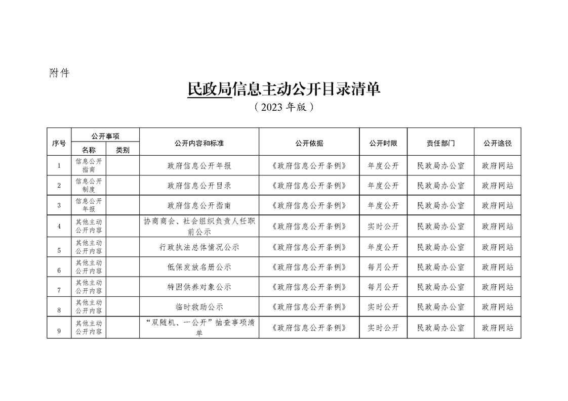 泗陽縣民政局政府信息主動公開目錄清單(2023)