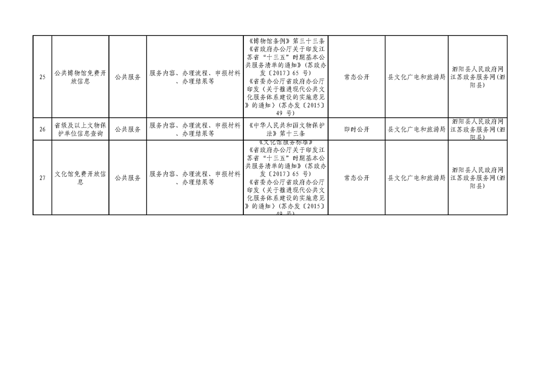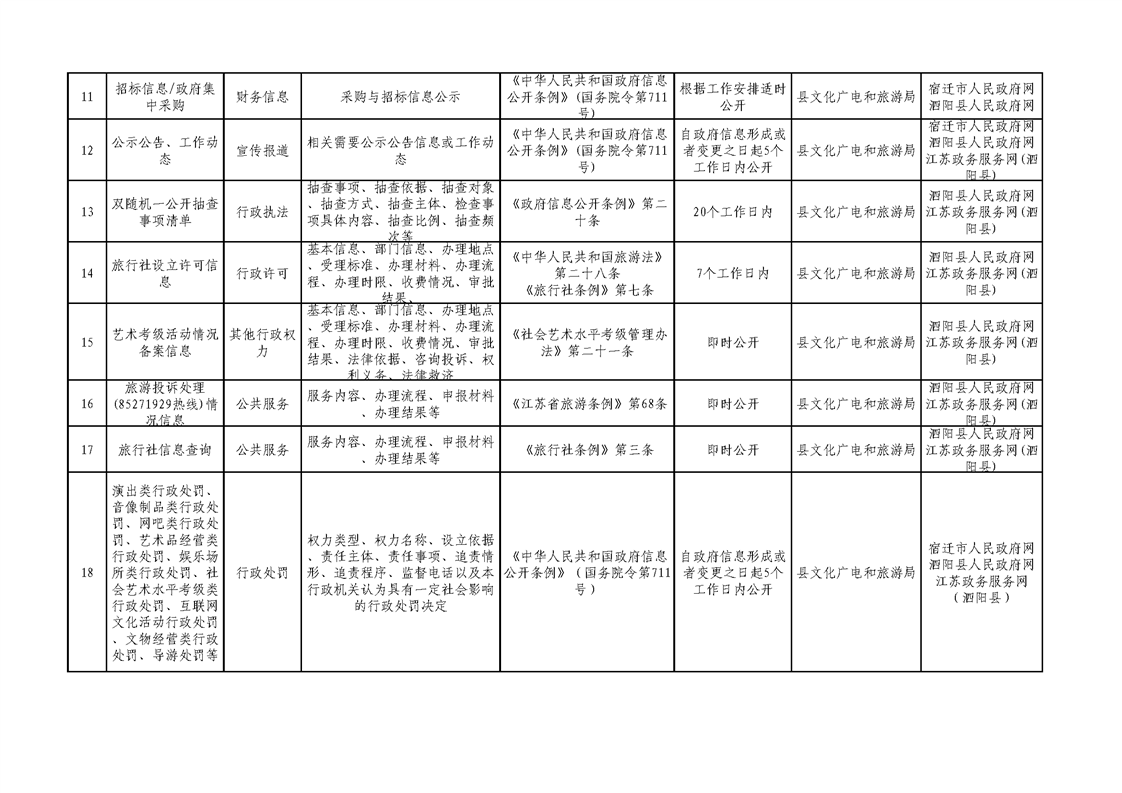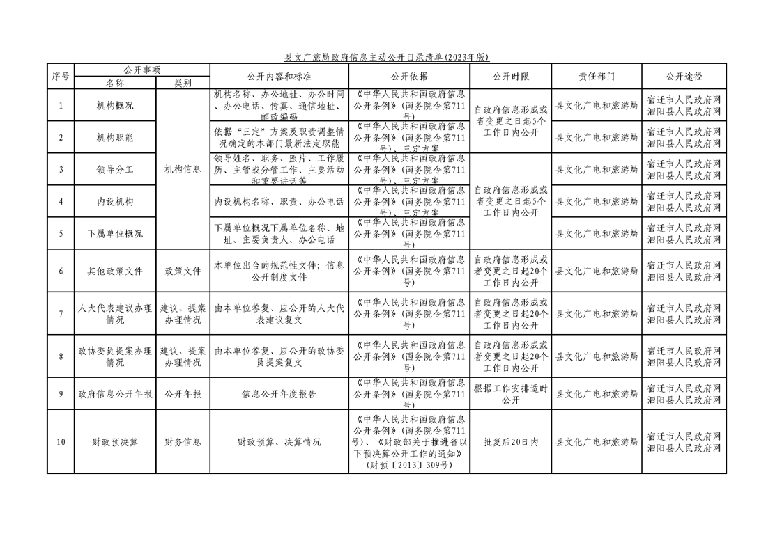 泗陽縣文廣旅局政府信息主動公開目錄清單(2023)
