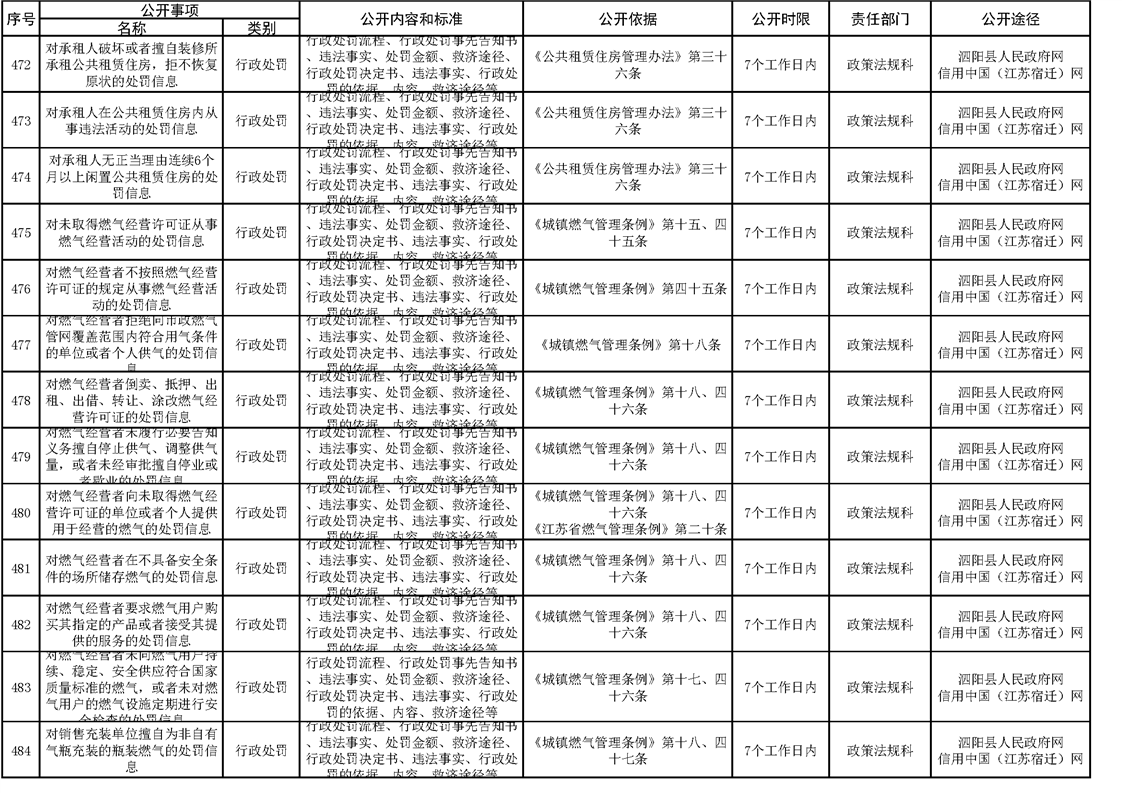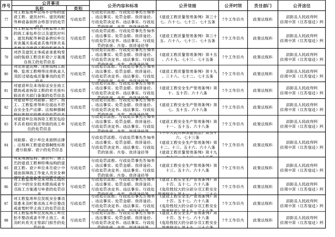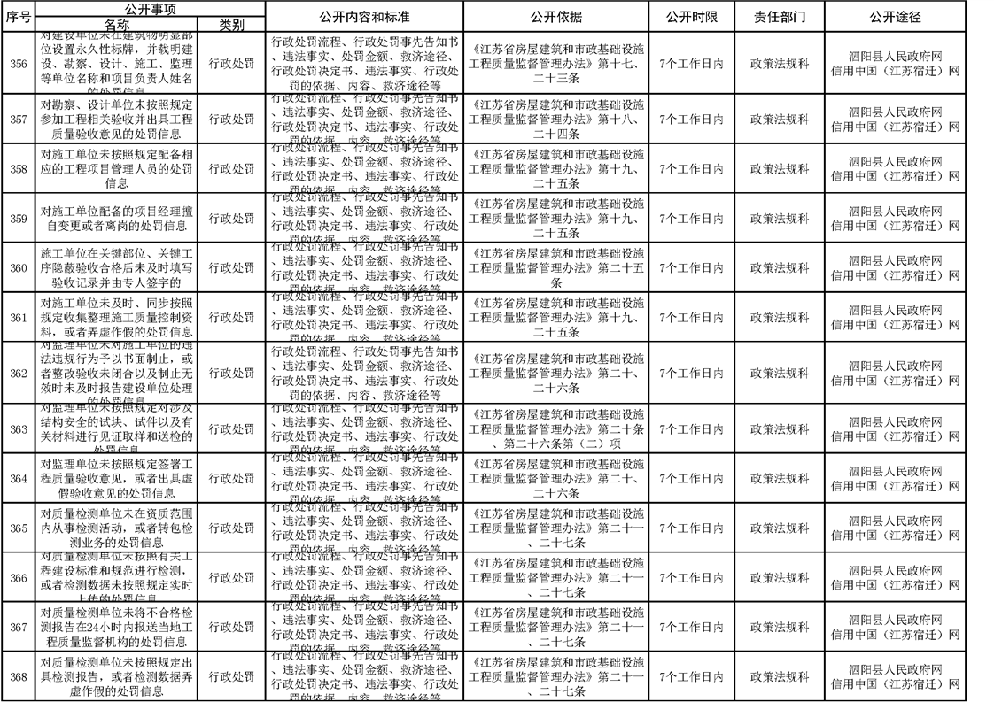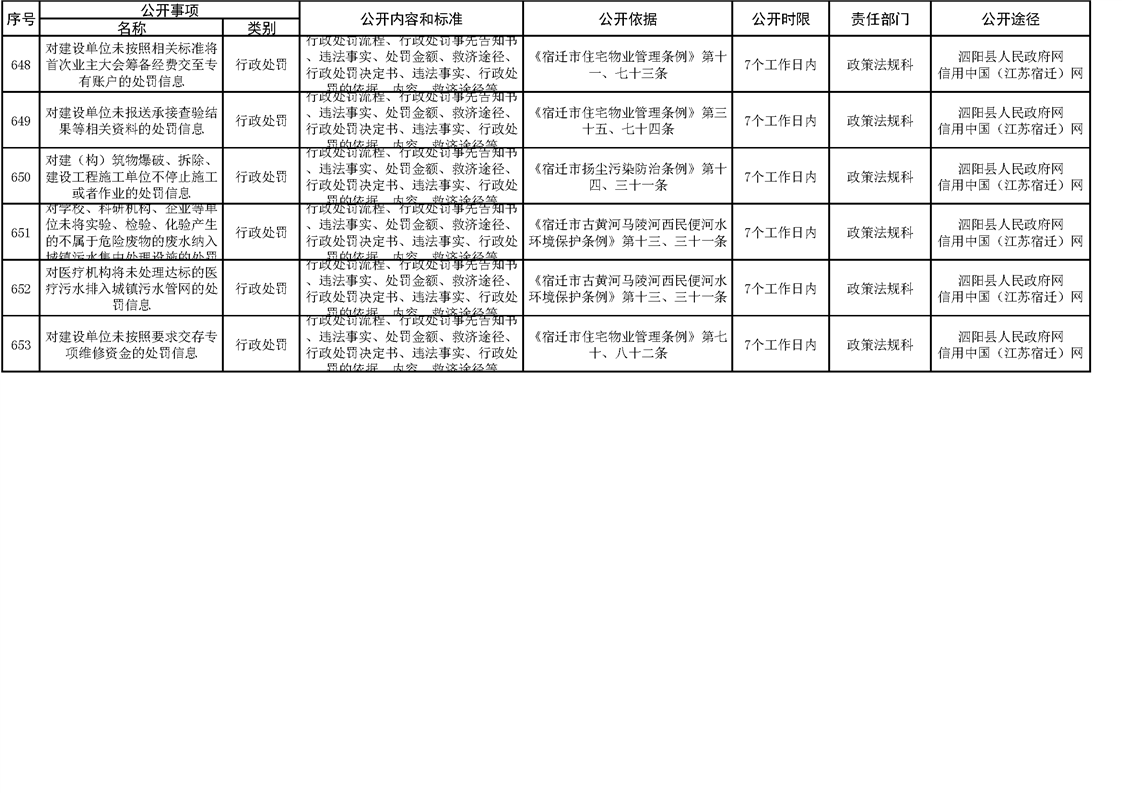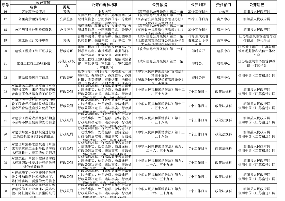 泗陽縣住建局政府信息主動公開目錄清單(2023)