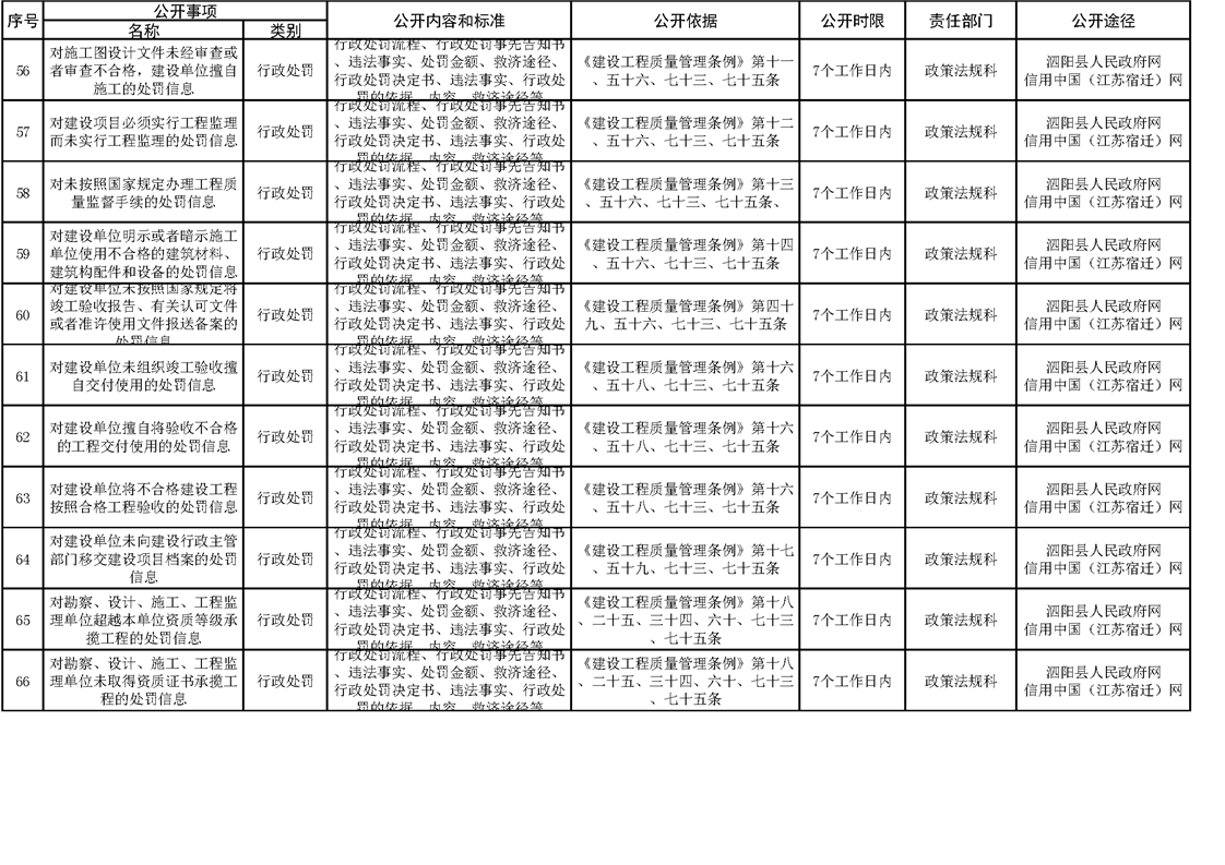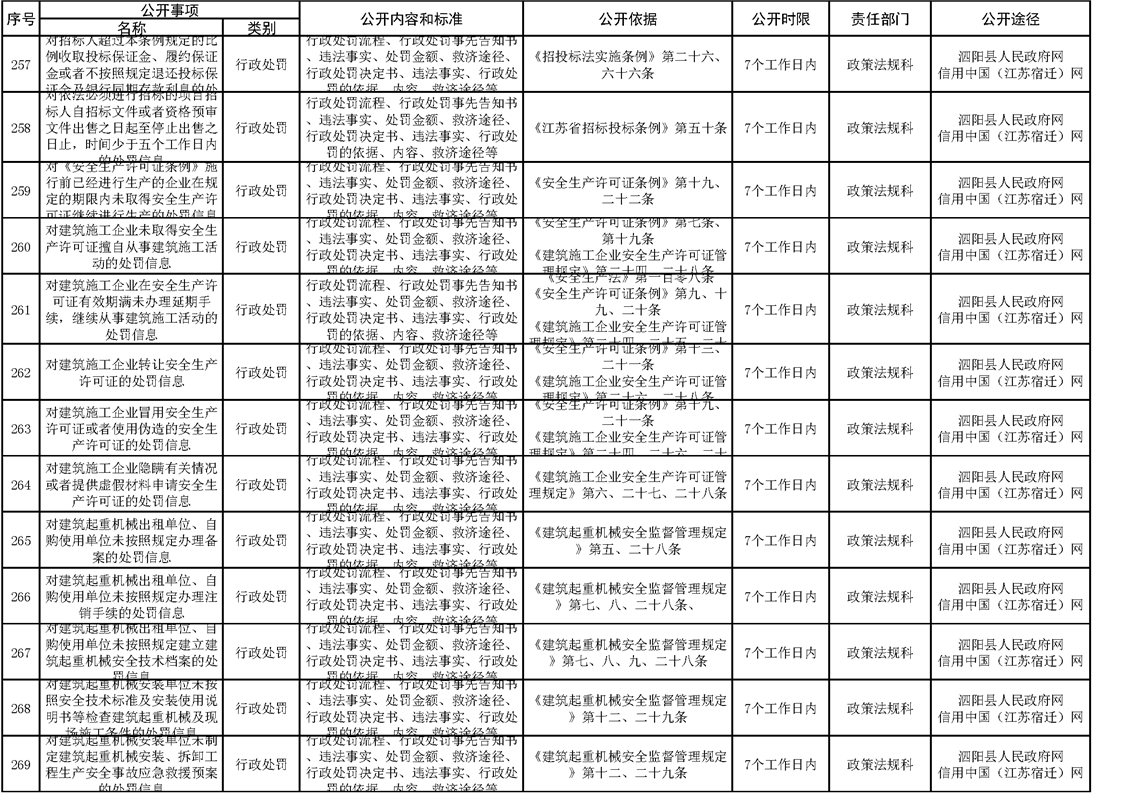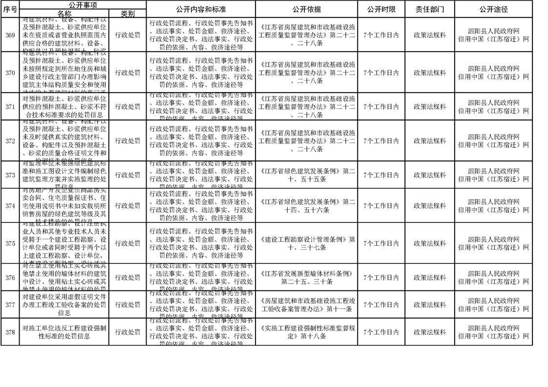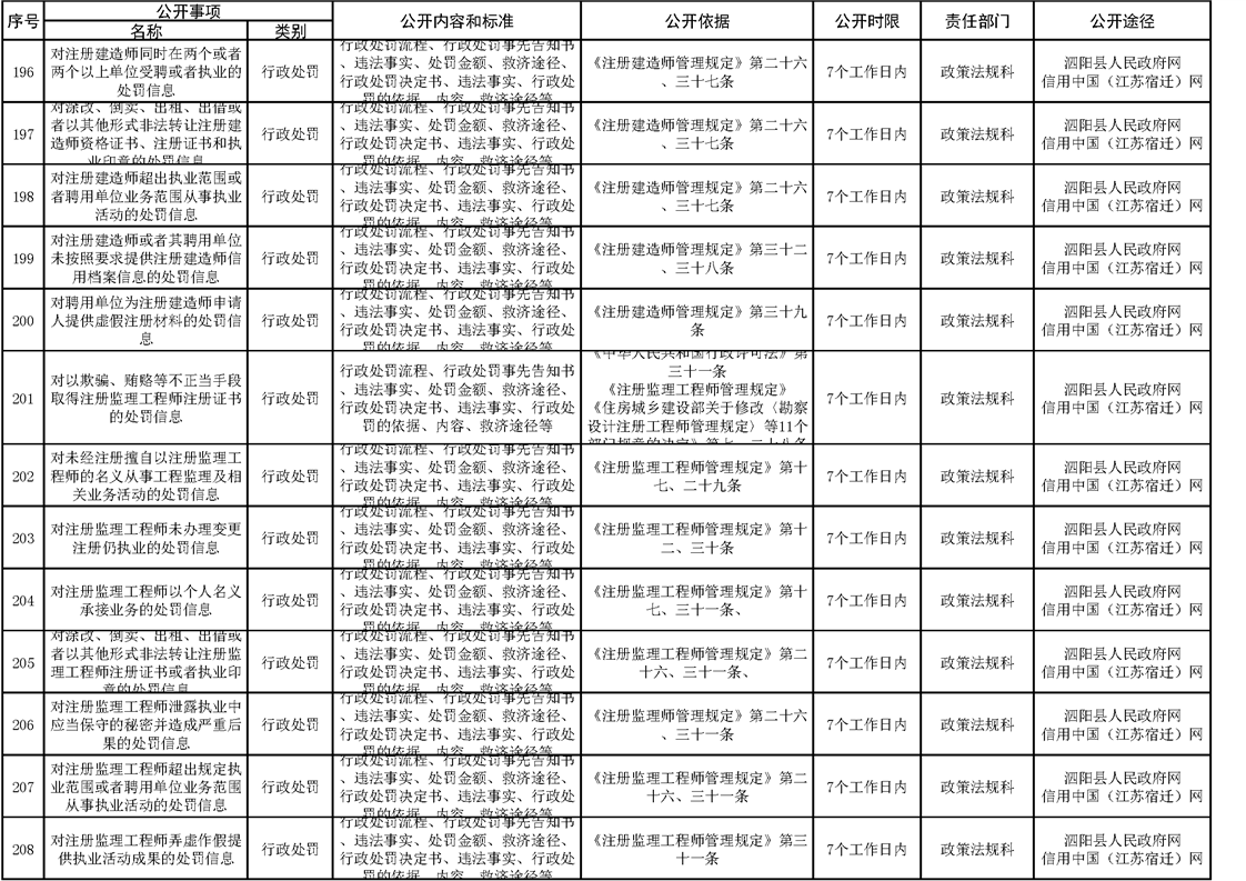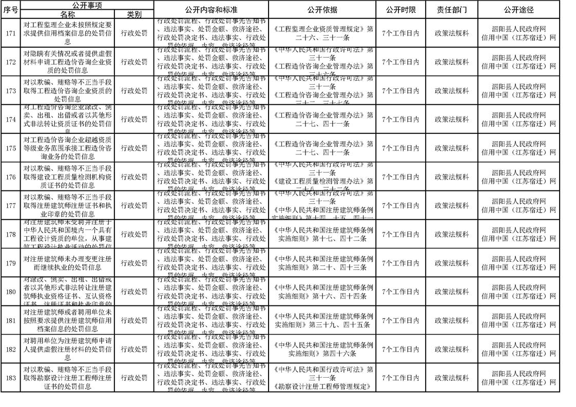 泗陽縣住建局政府信息主動公開目錄清單(2023)