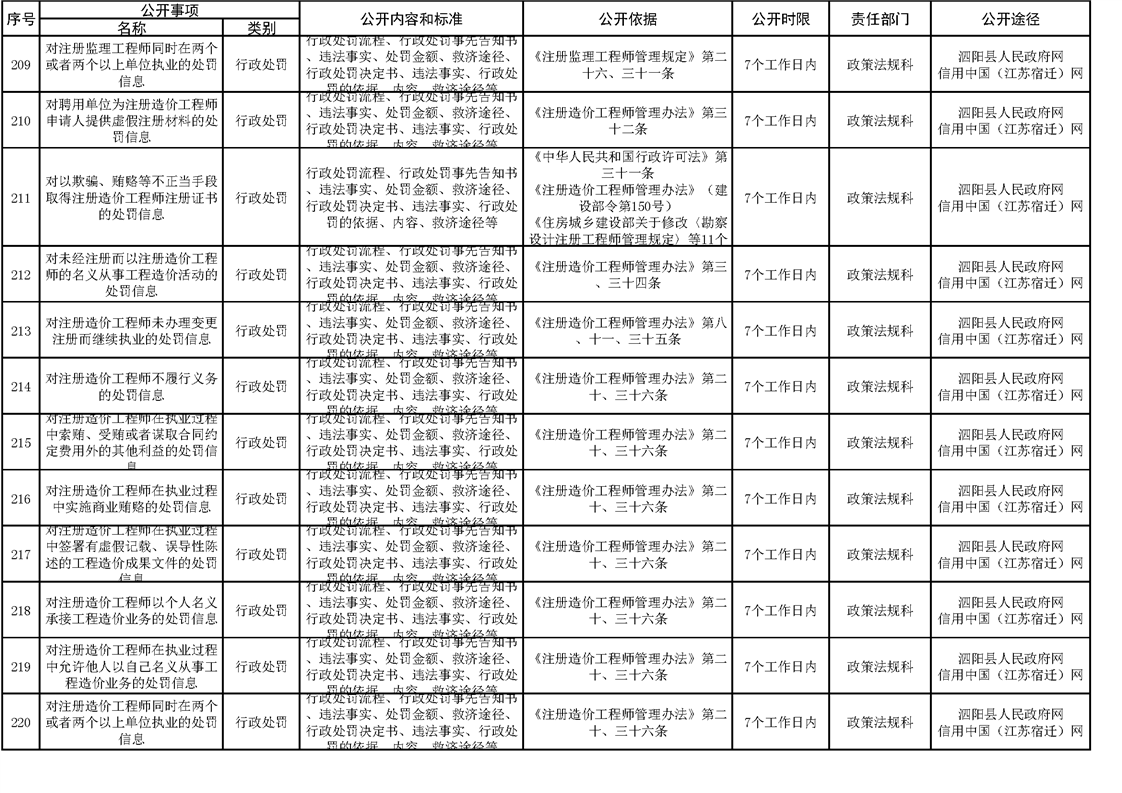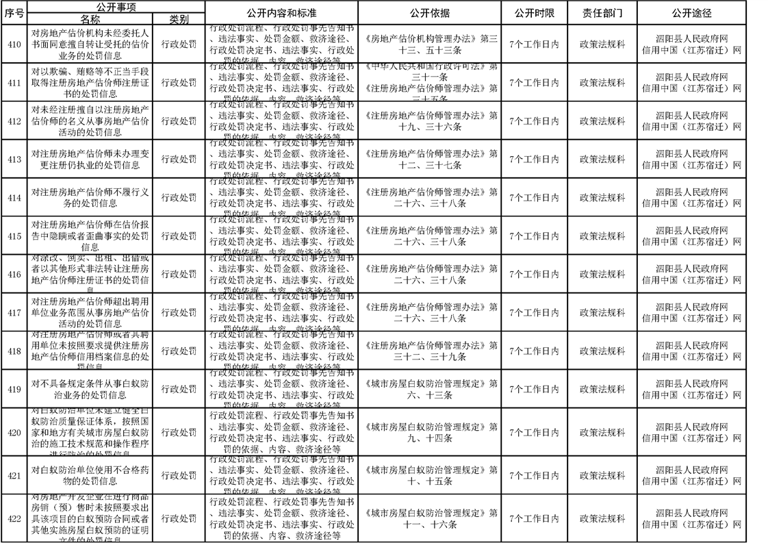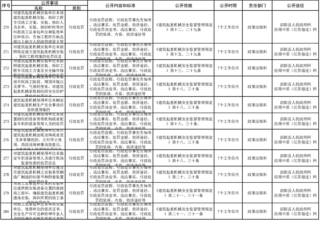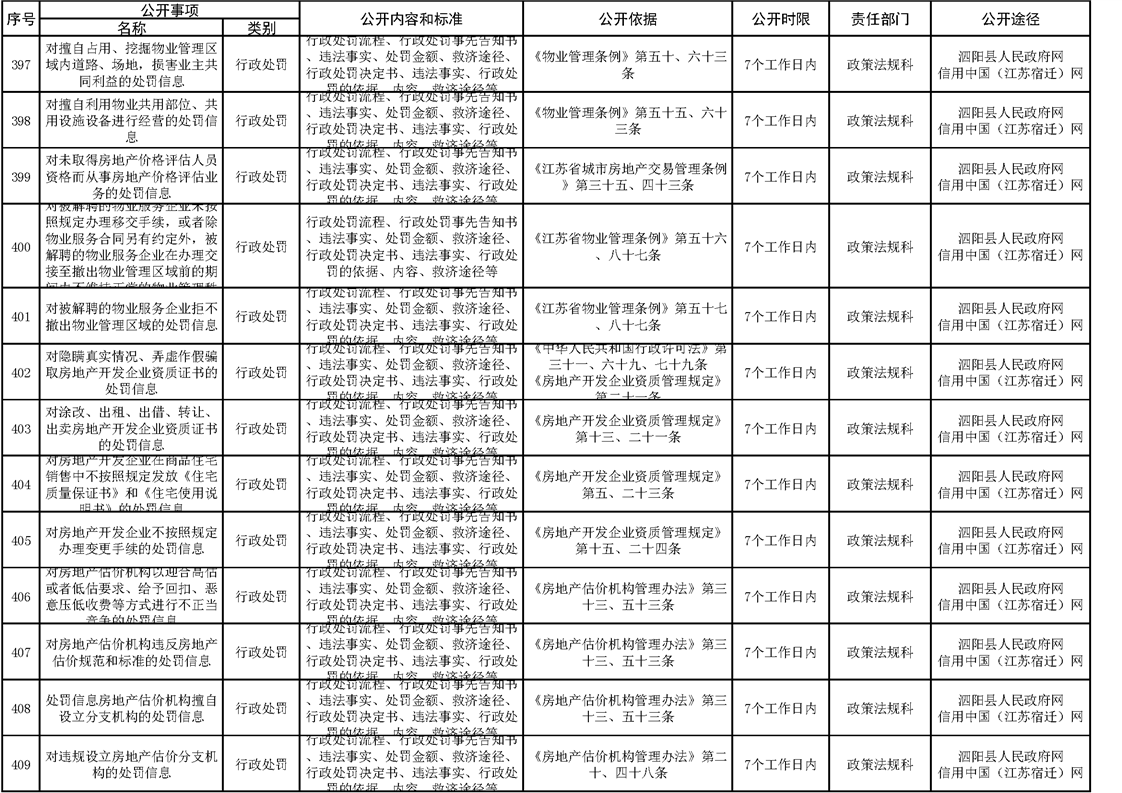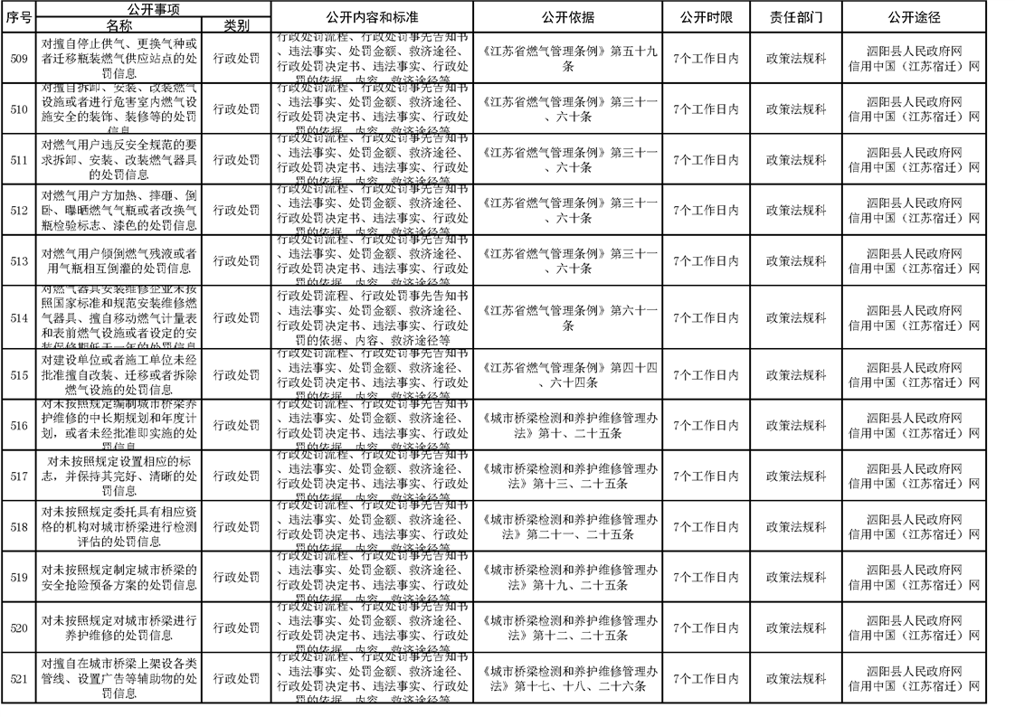 泗陽縣住建局政府信息主動公開目錄清單(2023)