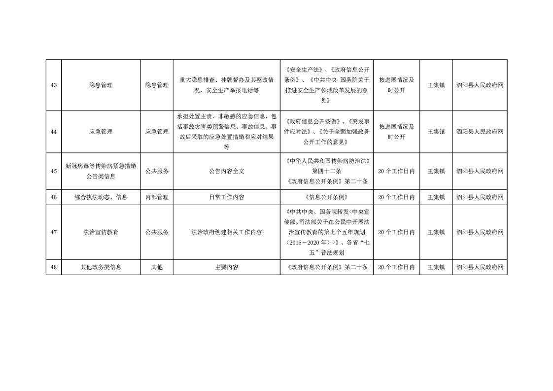 泗陽縣王集鎮政府信息主動公開目錄清單(2023)