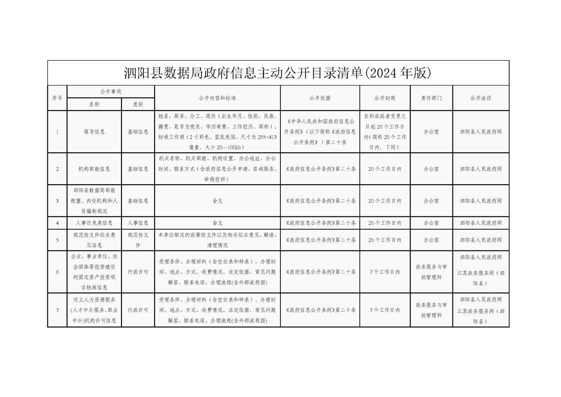 泗陽縣數(shù)據(jù)局政府信息主動公開目錄清單(2024年)