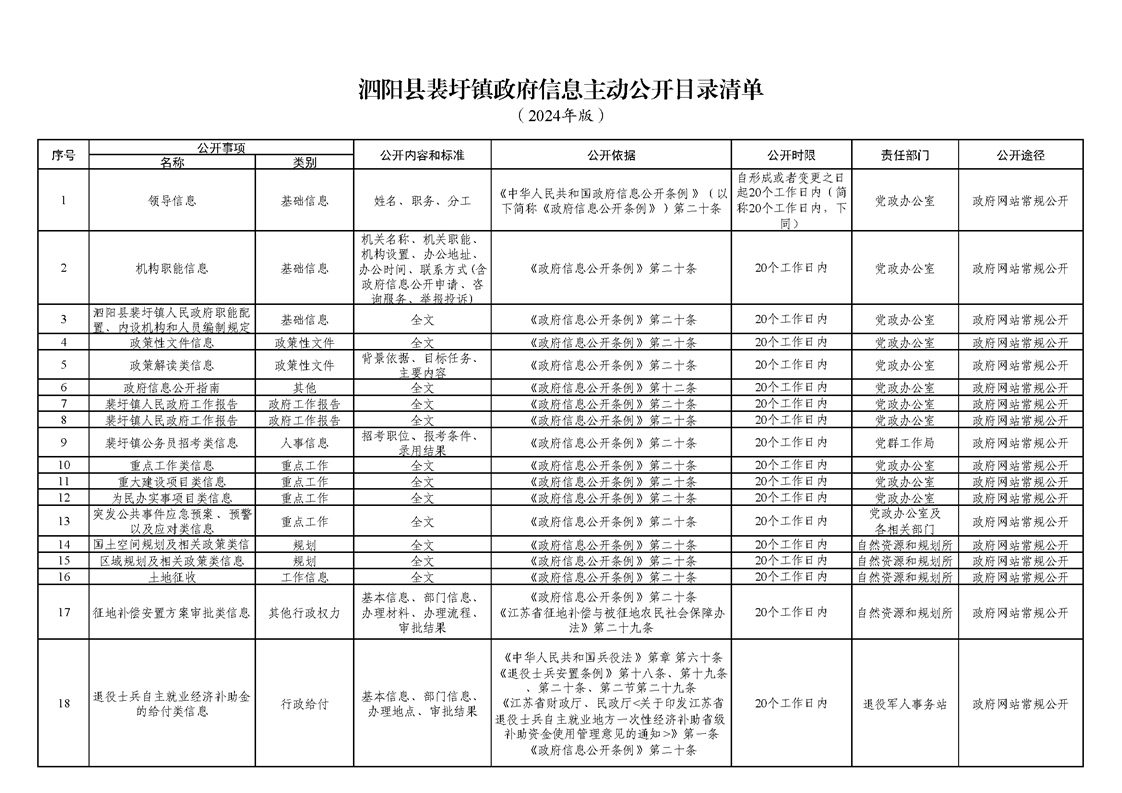裴圩鎮(zhèn)政府信息主動(dòng)公開目錄清單(2024年)