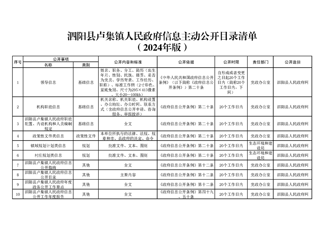 盧集鎮(zhèn)政府信息主動公開目錄清單(2024年)