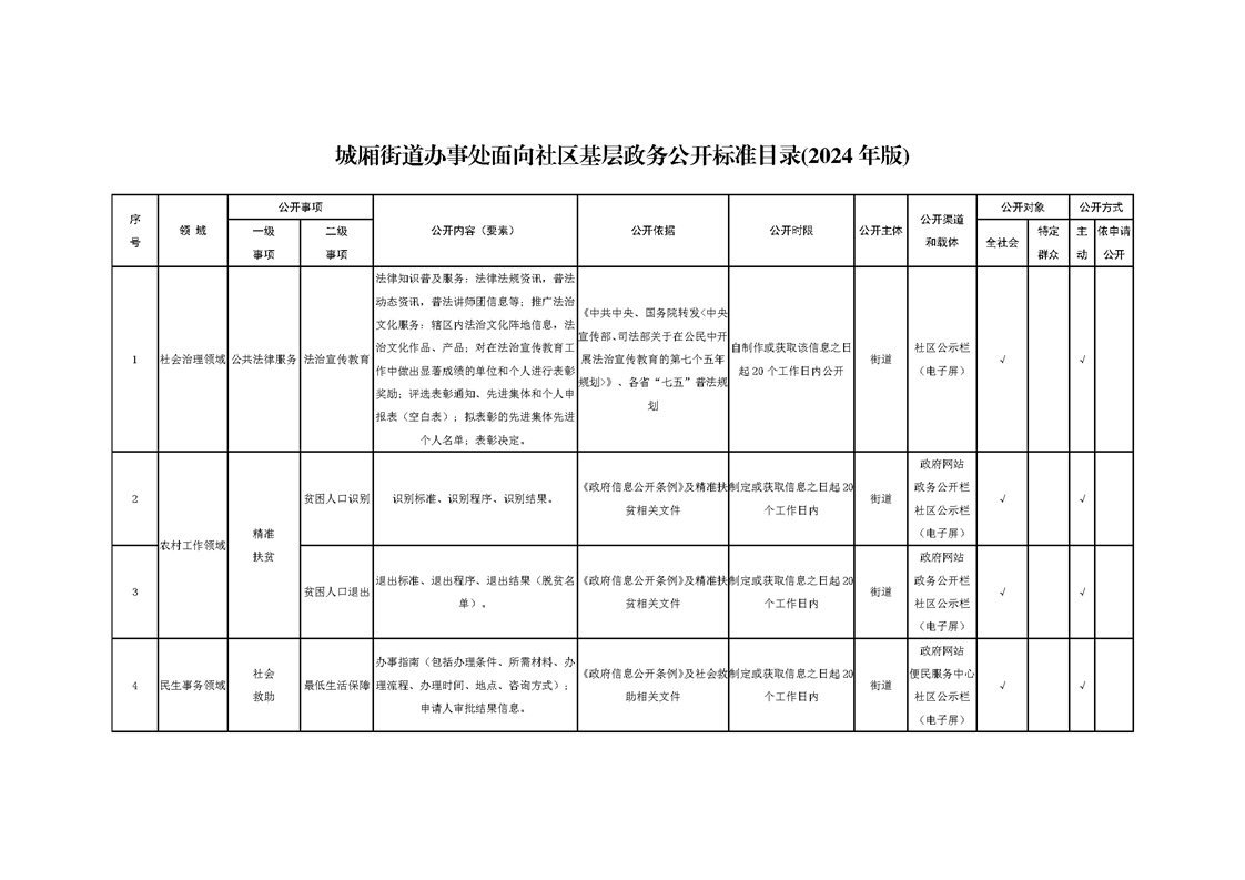 城廂街道辦事處面向村居基層政務(wù)公開標(biāo)準(zhǔn)目錄(2024年)