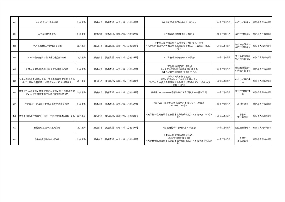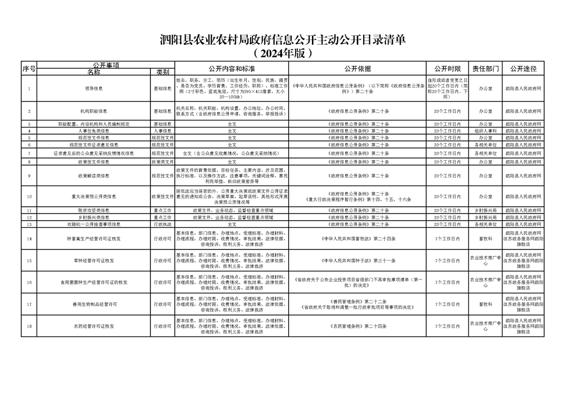 泗陽縣農(nóng)業(yè)農(nóng)村局政府信息主動公開目錄清單(2024年)