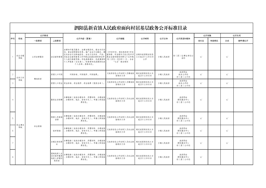 新袁鎮人民政府面向村居基層政務公開標準目錄(2024年)