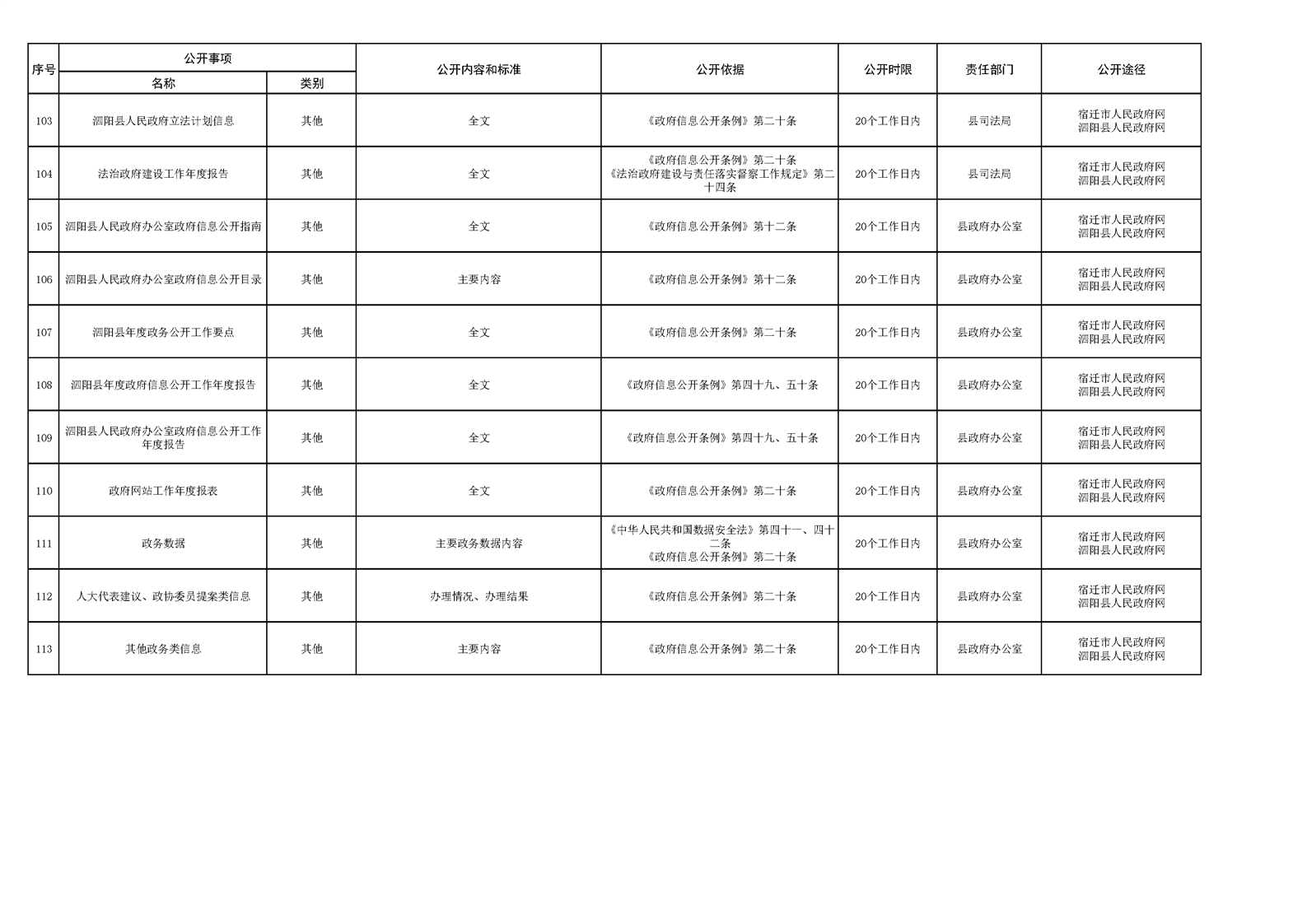 泗陽縣人民政府及辦公室政府信息主動公開目錄清單(2024年)