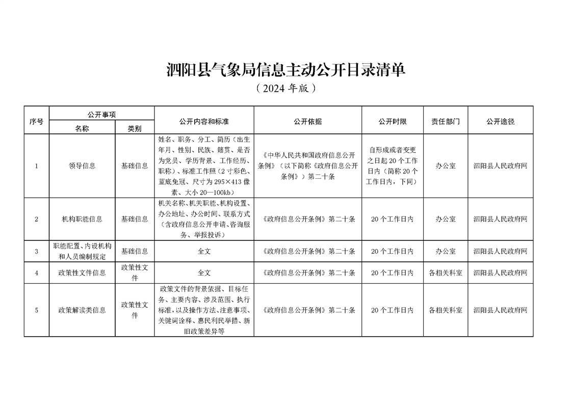 泗陽縣氣象局政府信息主動公開目錄清單(2024年)