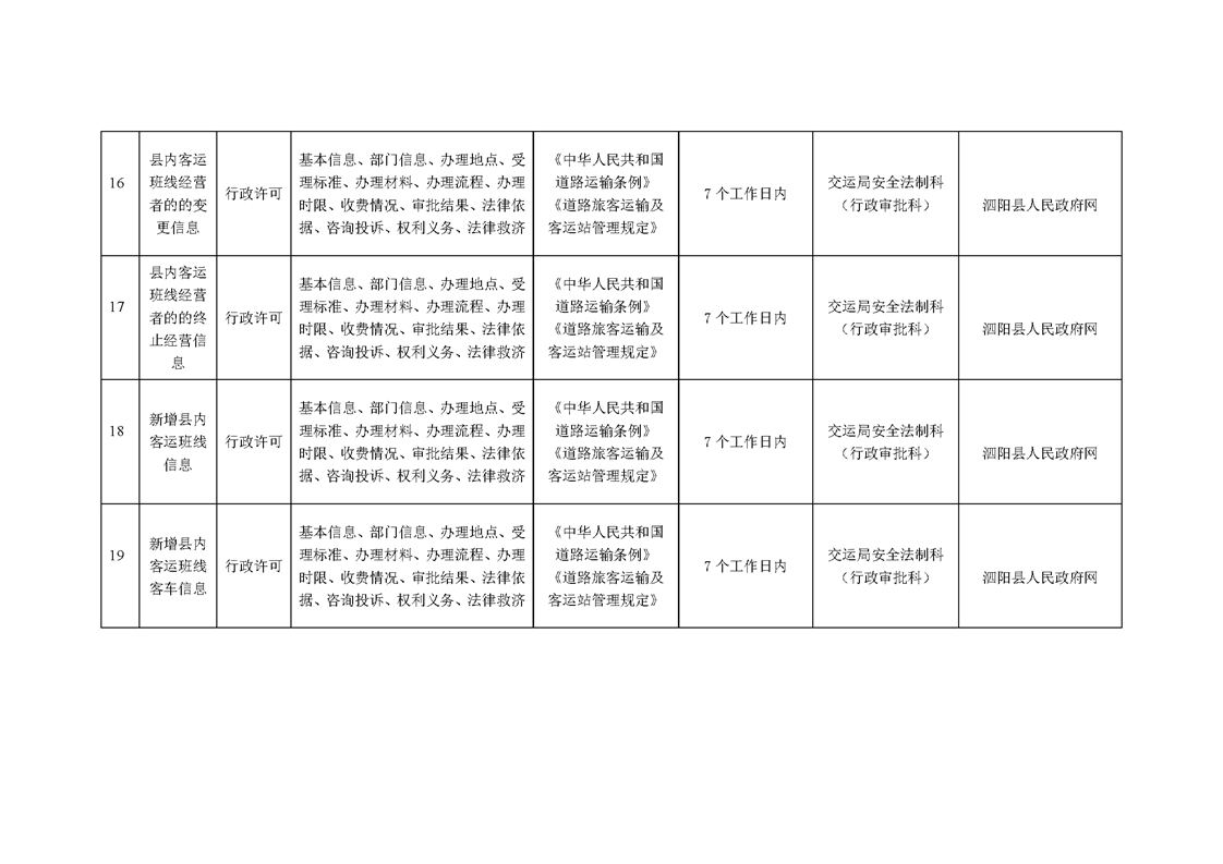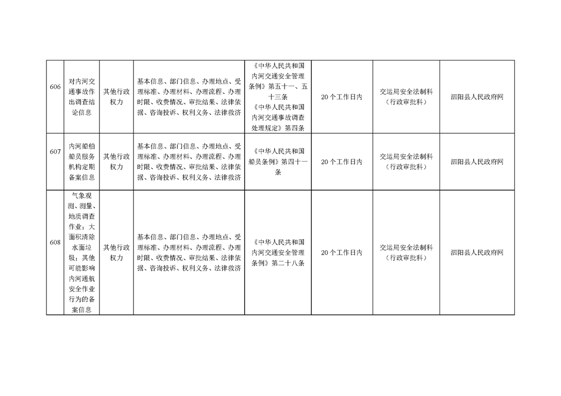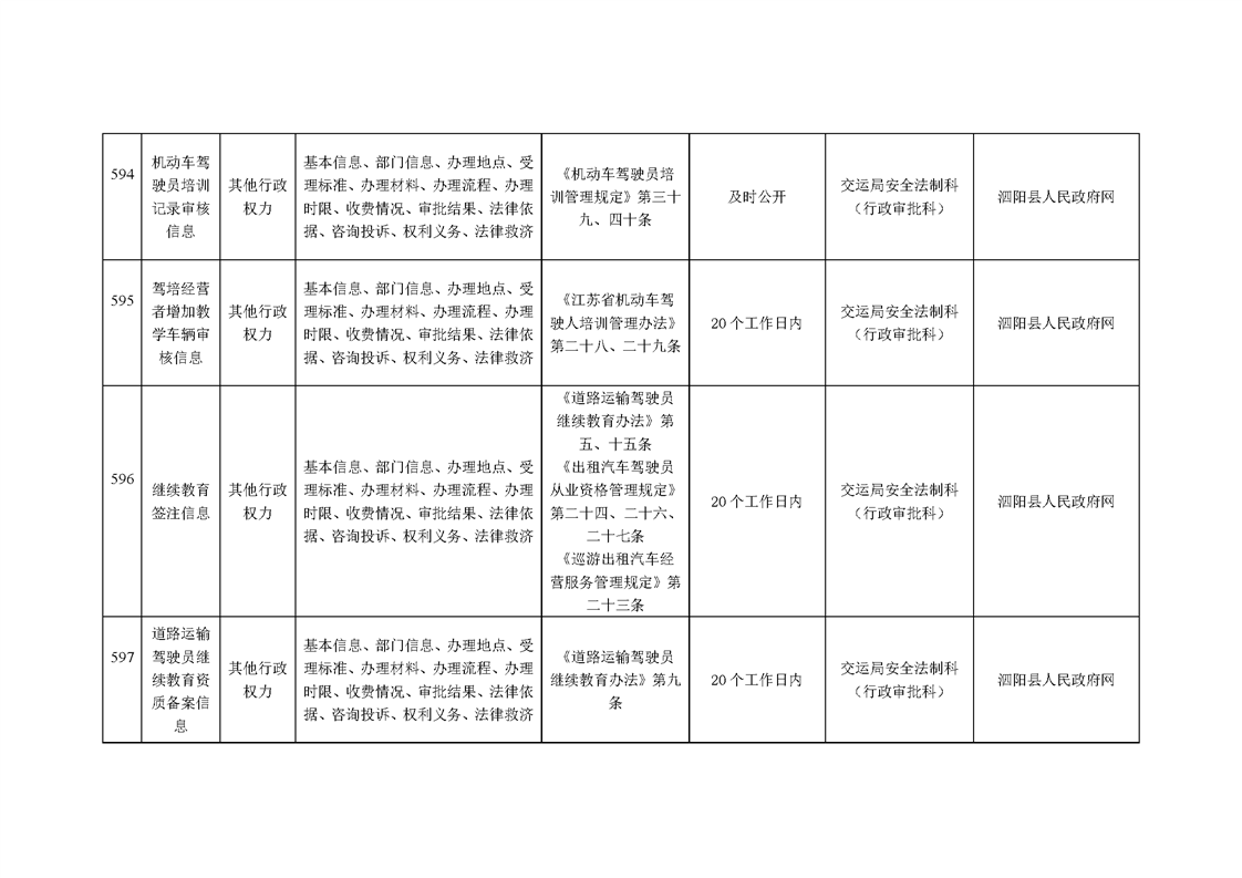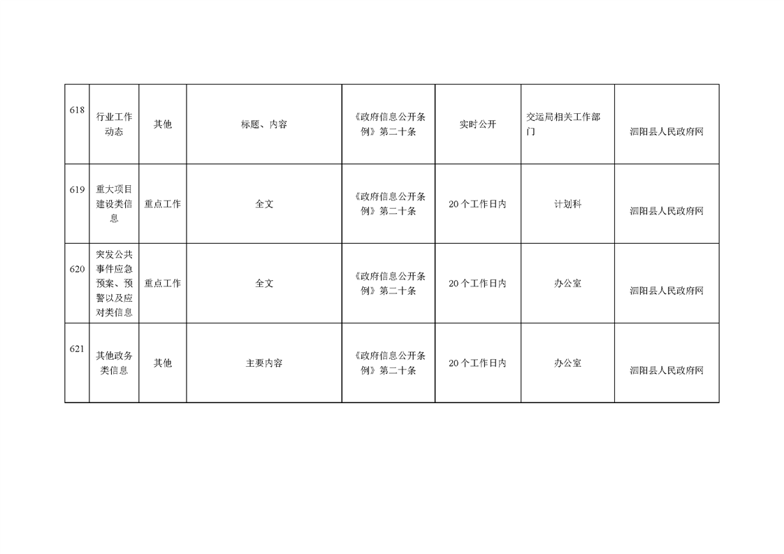 泗陽縣交通運輸局政府信息主動公開目錄清單(2024年)