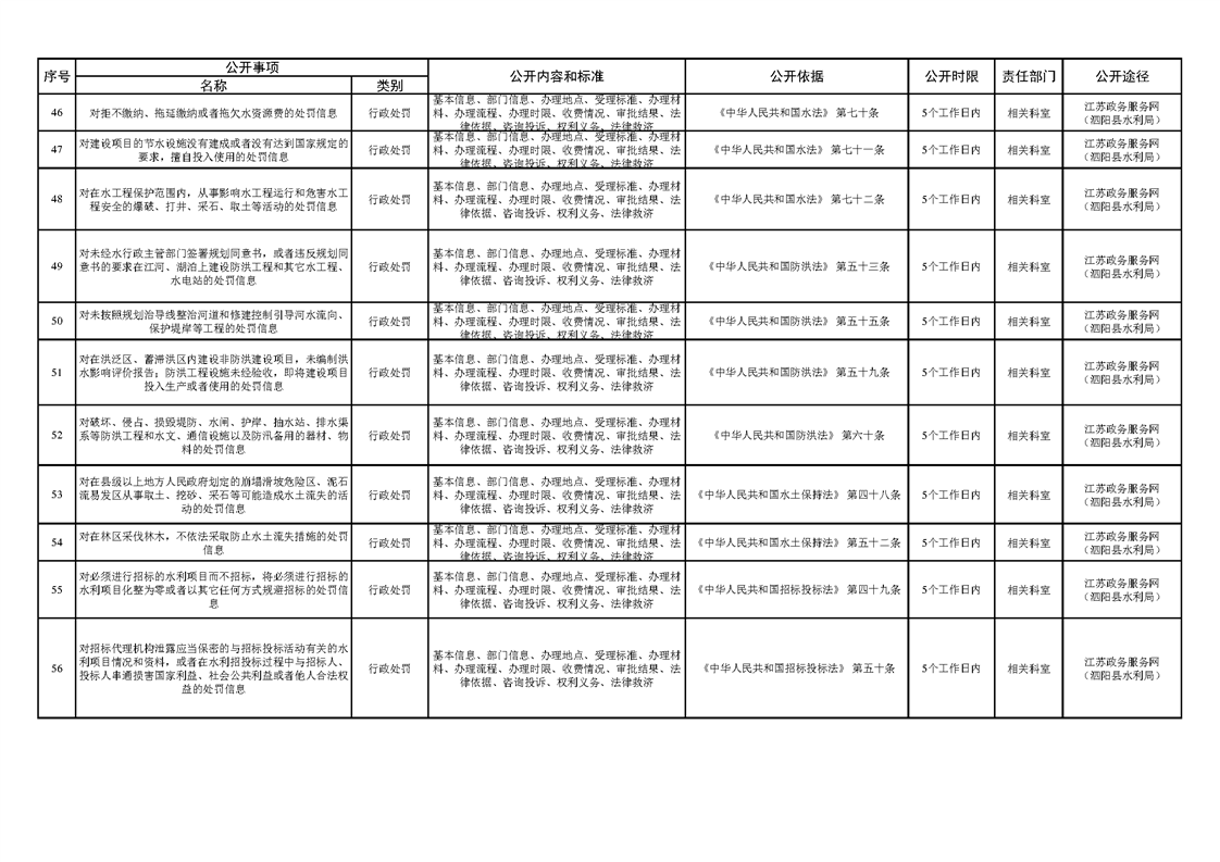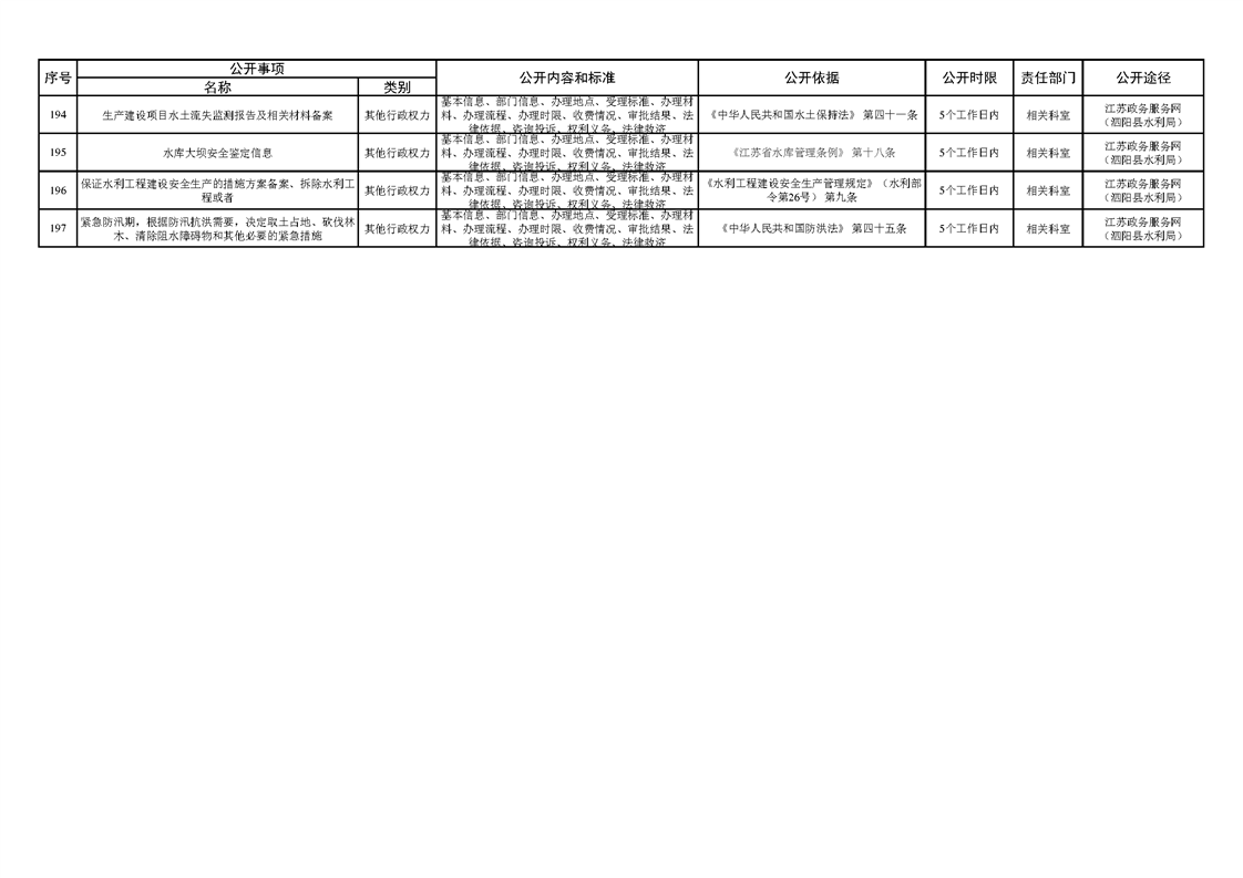 泗陽縣水利局政府信息主動公開目錄清單(2024年)
