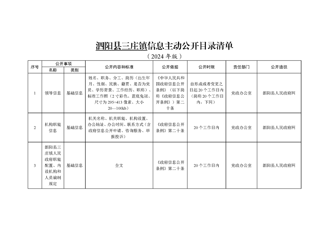 三莊鎮政府信息主動公開目錄清單(2024年)