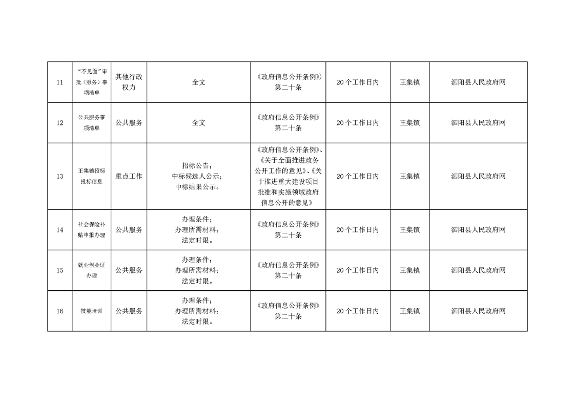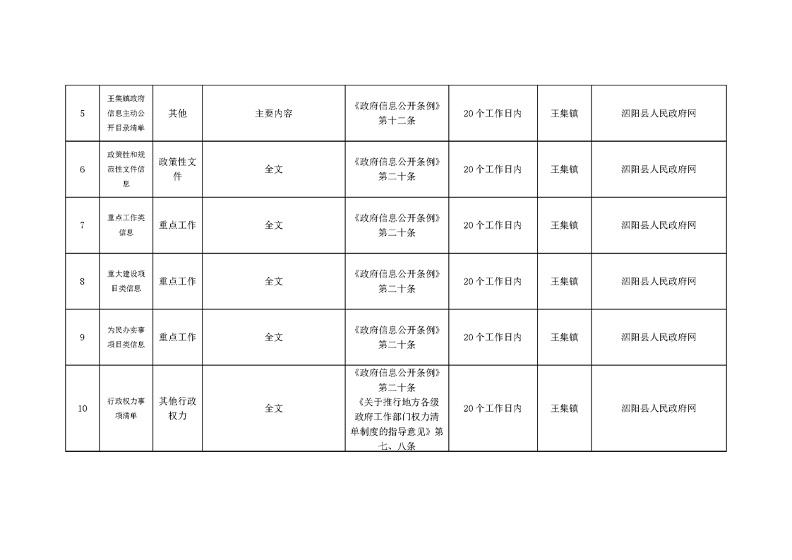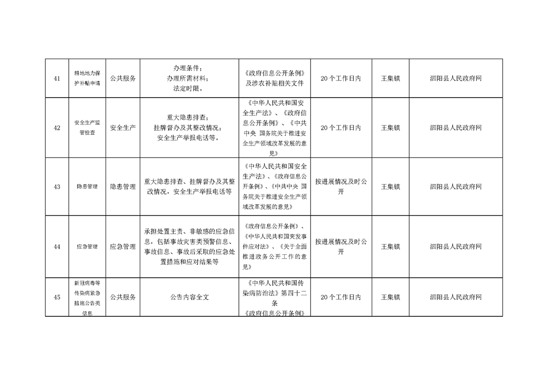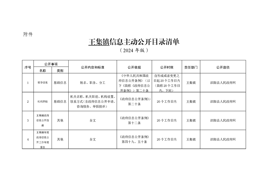 王集鎮政府信息主動公開目錄清單(2024年)