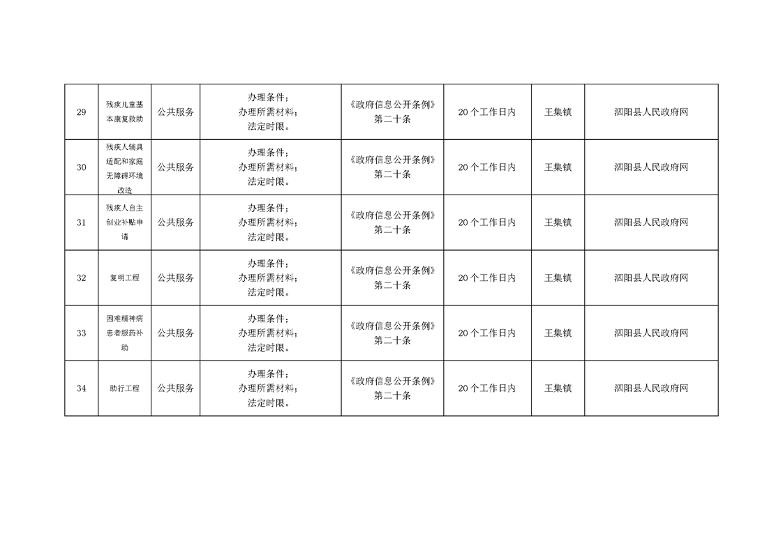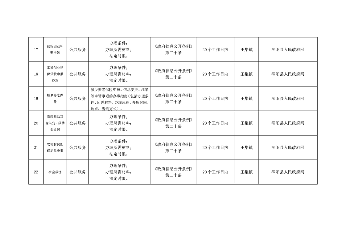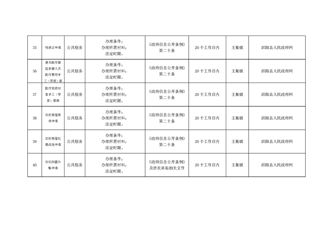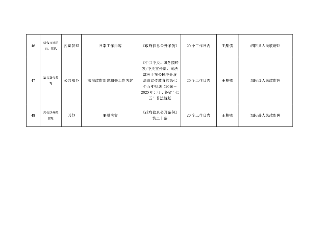 王集鎮政府信息主動公開目錄清單(2024年)