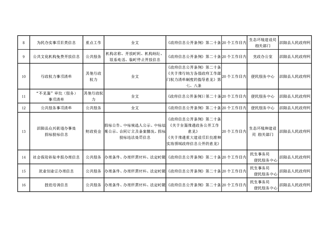 眾興街道辦事處政府信息主動公開目錄清單(2024年)