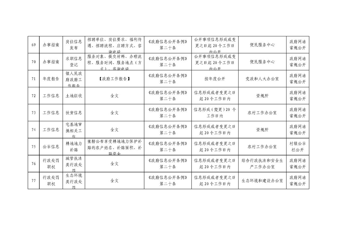 泗陽縣穿城鎮政府信息主動公開目錄清單(2025年版)