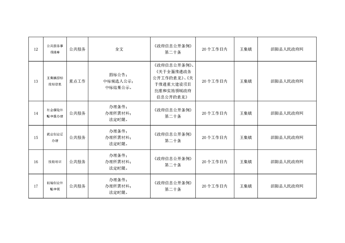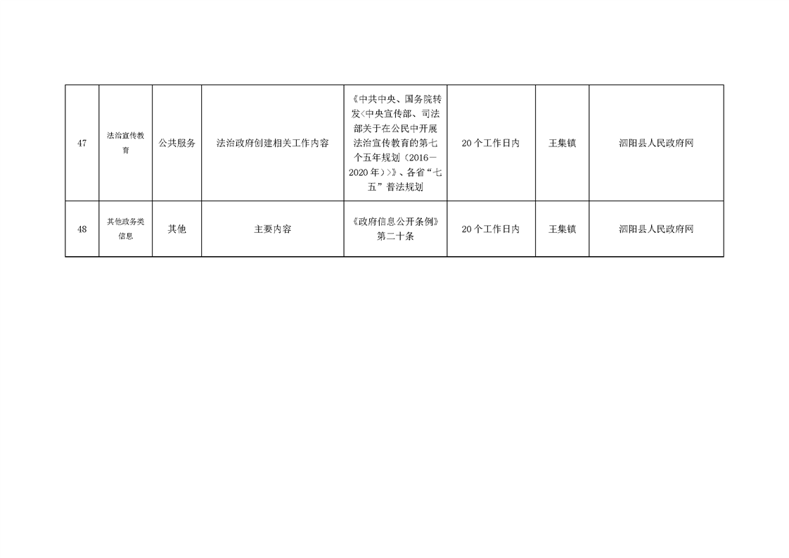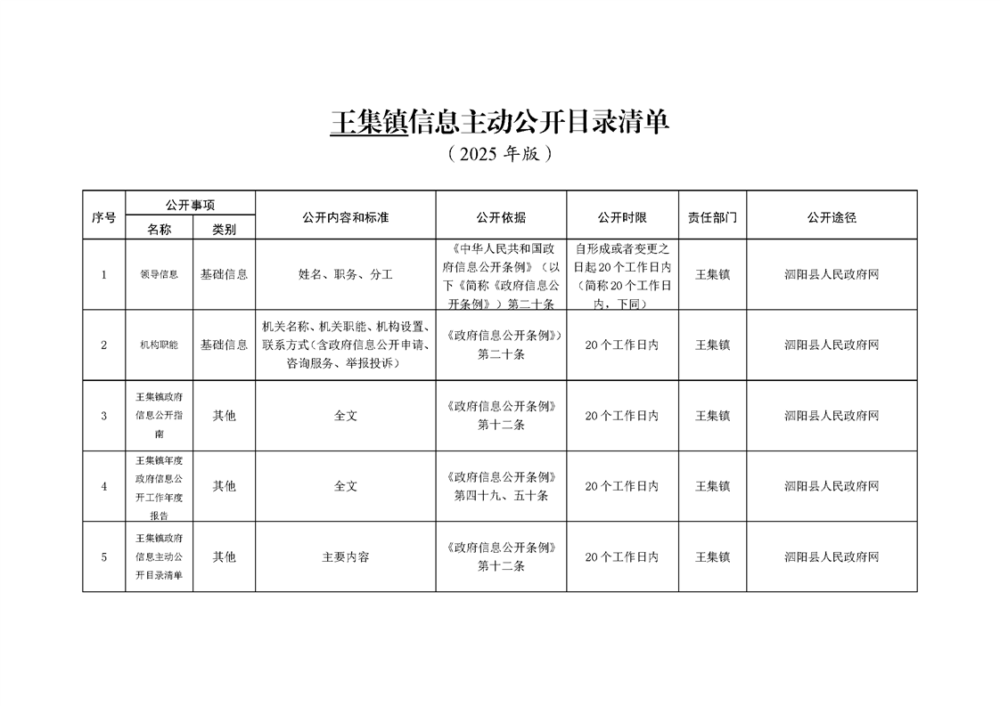 泗陽縣王集鎮政府信息主動公開目錄清單(2025年版)