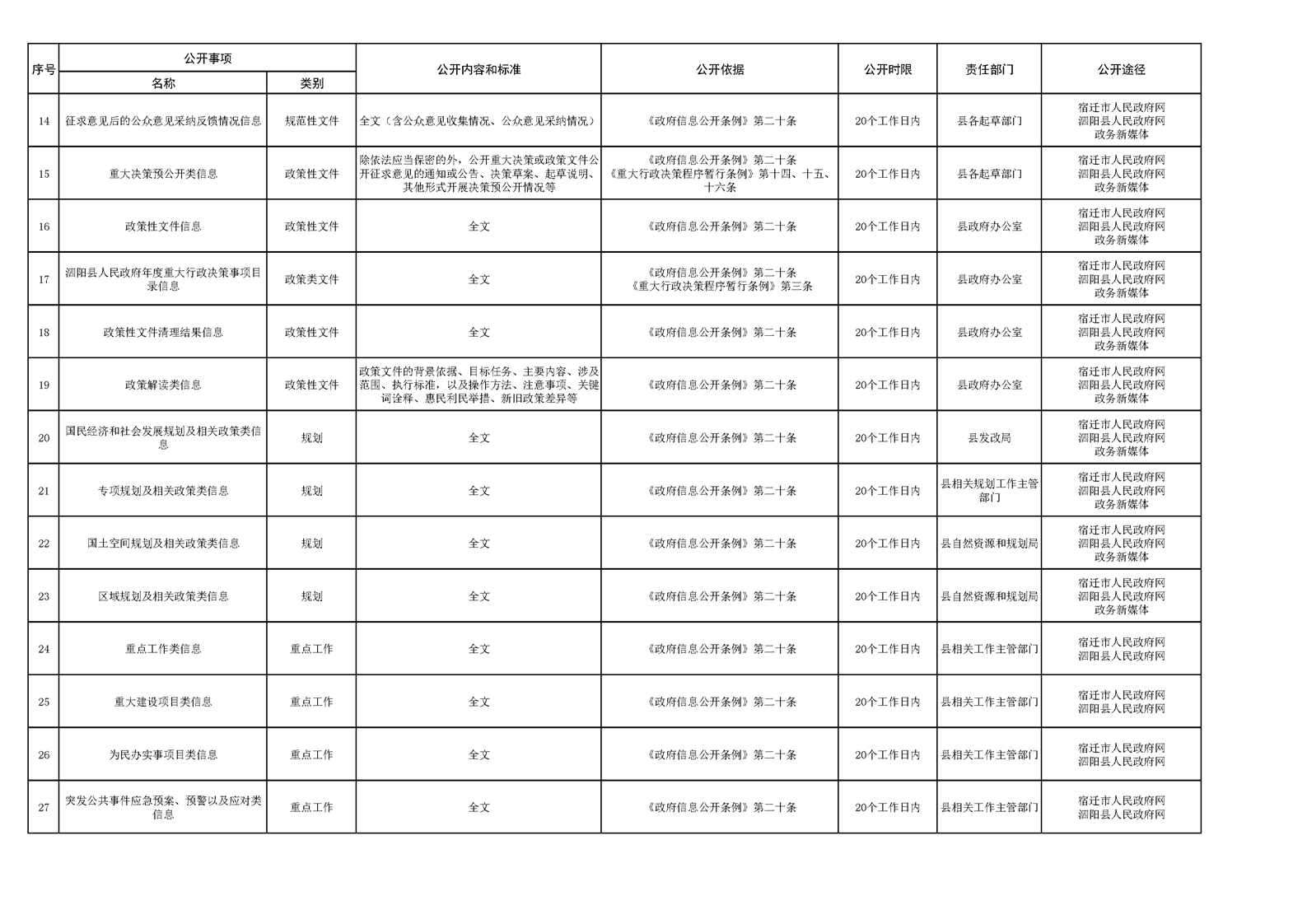 泗陽縣人民政府及辦公室政府信息主動(dòng)公開目錄清單(2025年版)