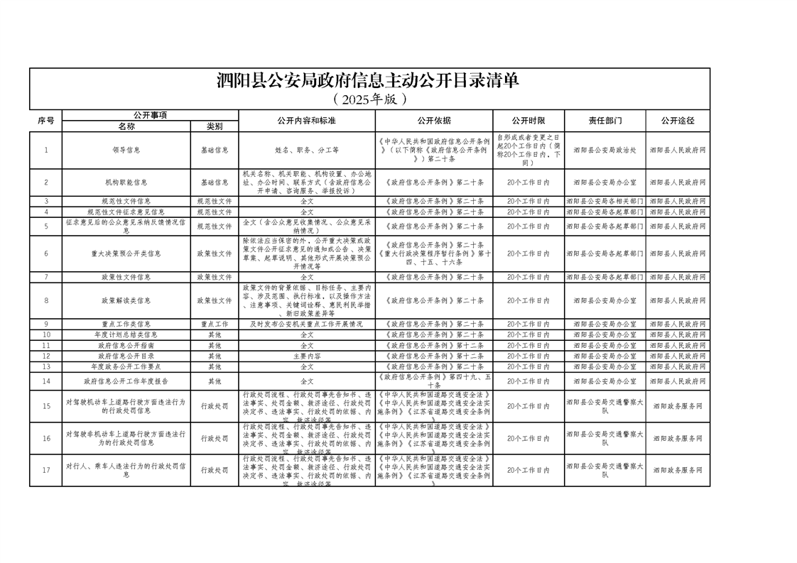 泗陽縣公安局政府信息主動公開目錄清單(2025年版)