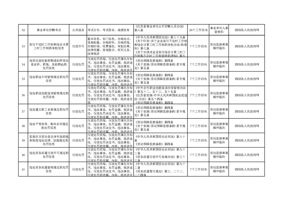 泗陽縣人力資源和社會保障局政府信息主動公開目錄清單(2025年版)