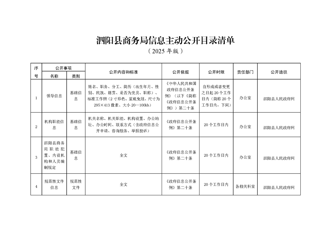 泗陽縣商務(wù)局政府信息主動(dòng)公開目錄清單(2025年版)