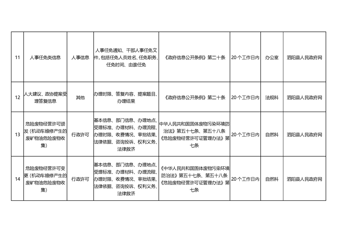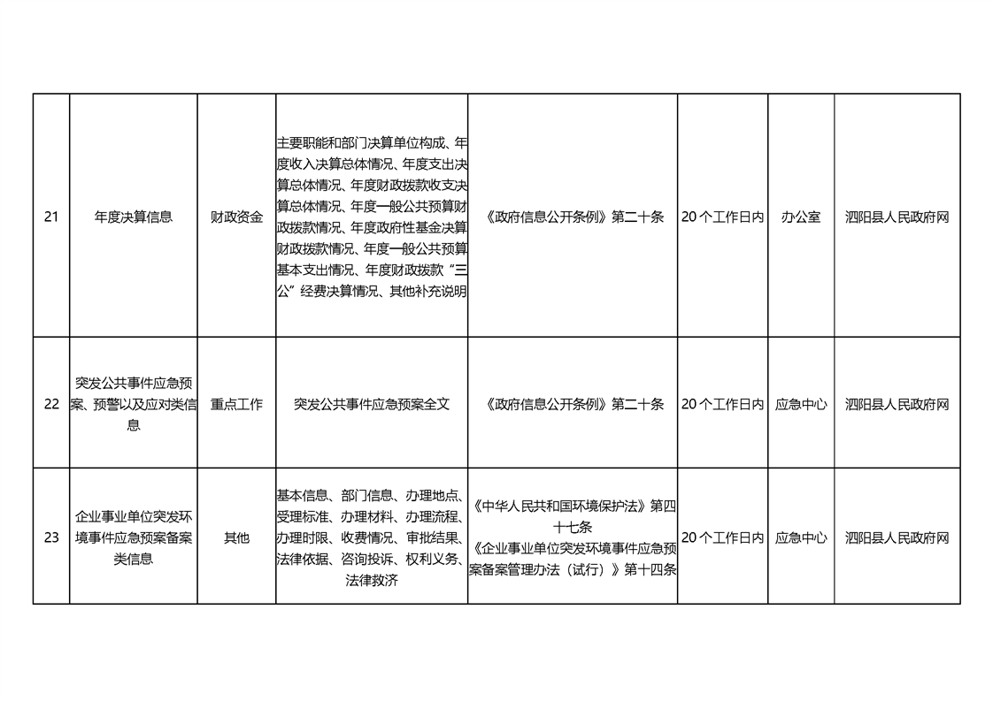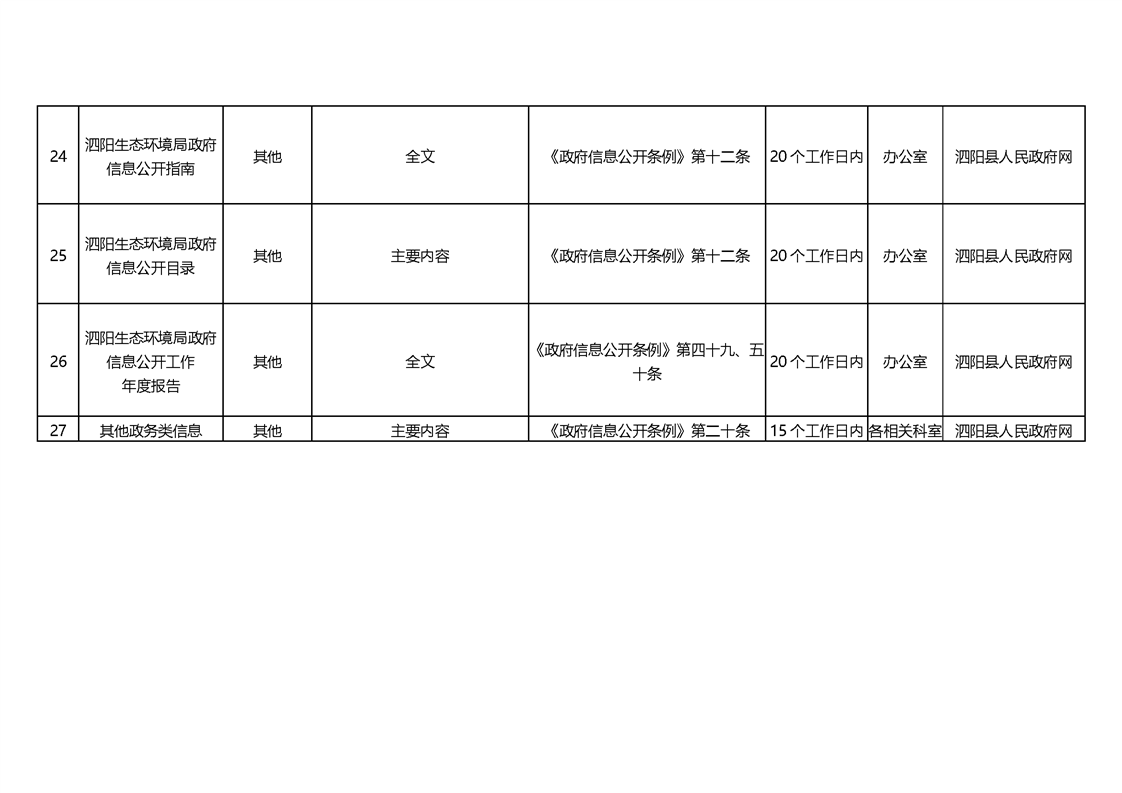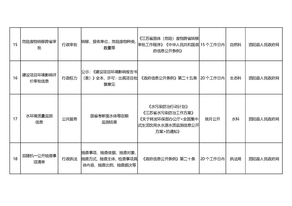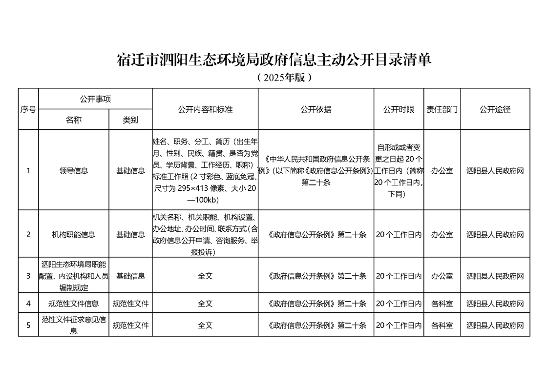 宿遷市泗陽生態環境局政府信息主動公開目錄清單(2025年版)