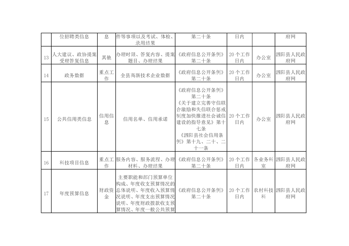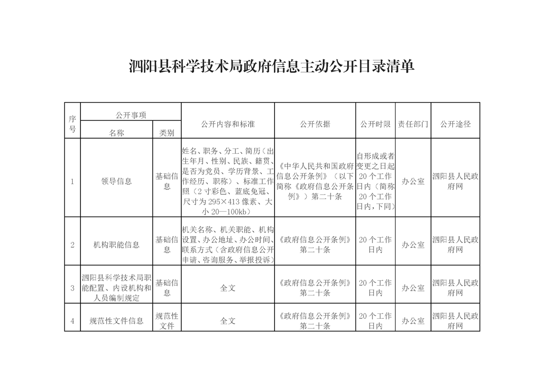 泗陽縣科技局政府信息主動公開目錄清單(2025年版)
