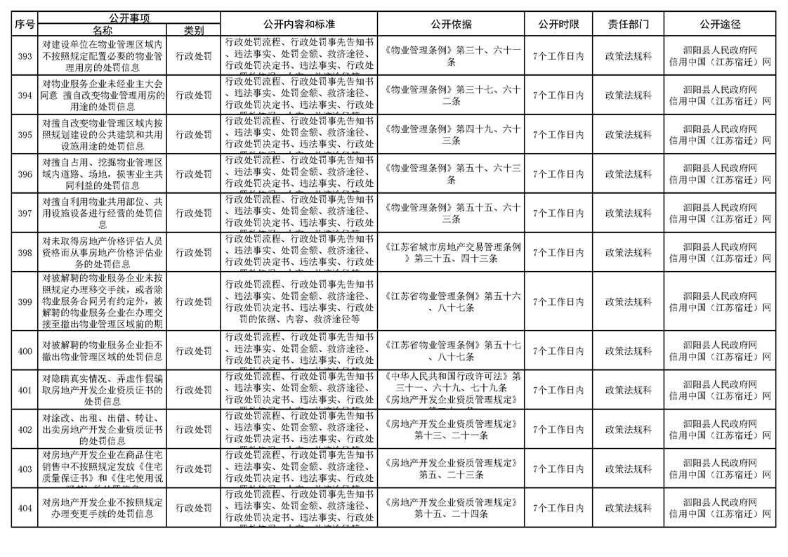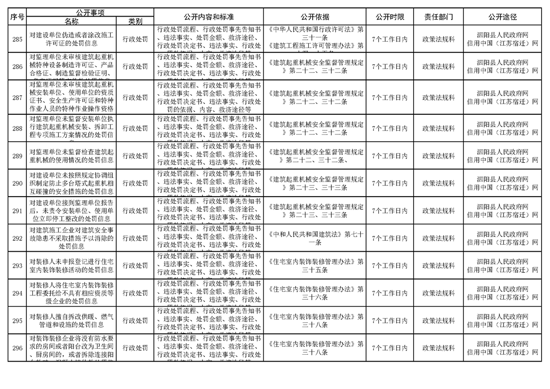泗陽縣住房和城鄉建設局政府信息主動公開目錄清單(2025年版)