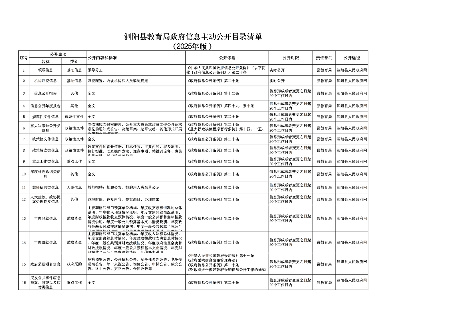 泗陽縣教育局政府信息主動公開目錄清單(2025年版)