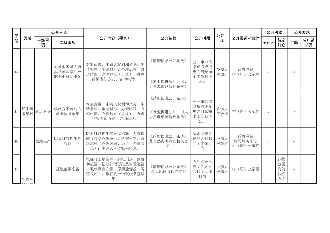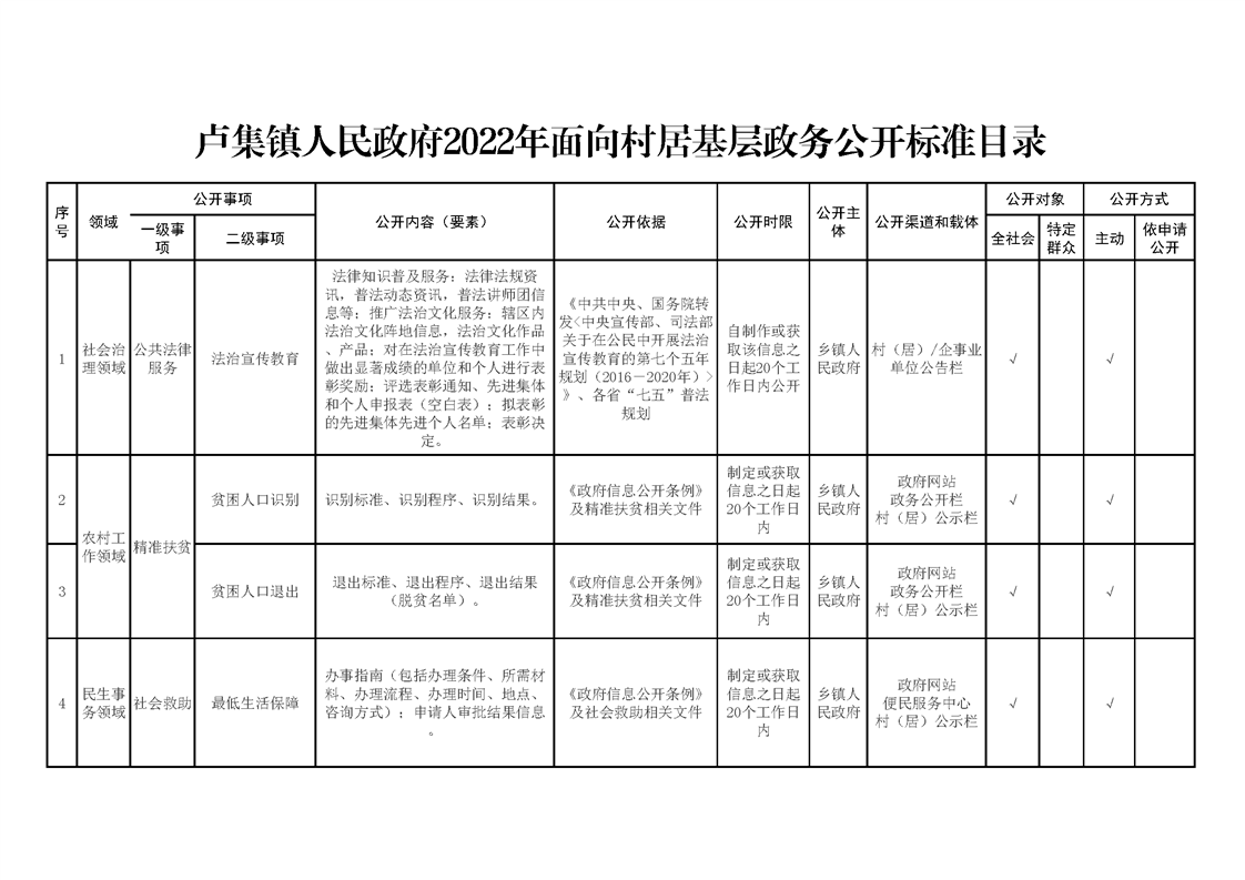 盧集鎮人民政府2-22年面向村居基層政務公開標準目錄