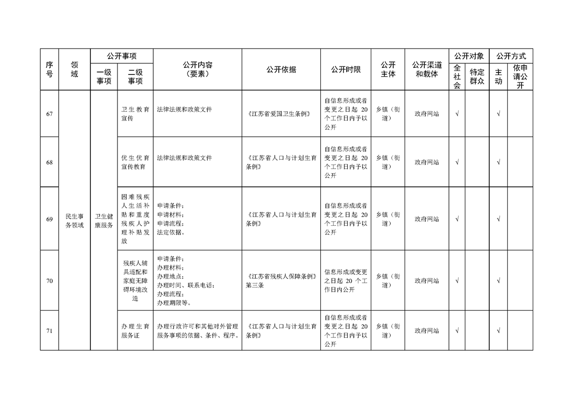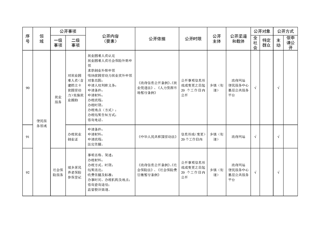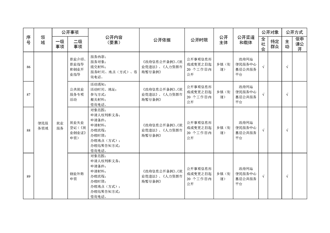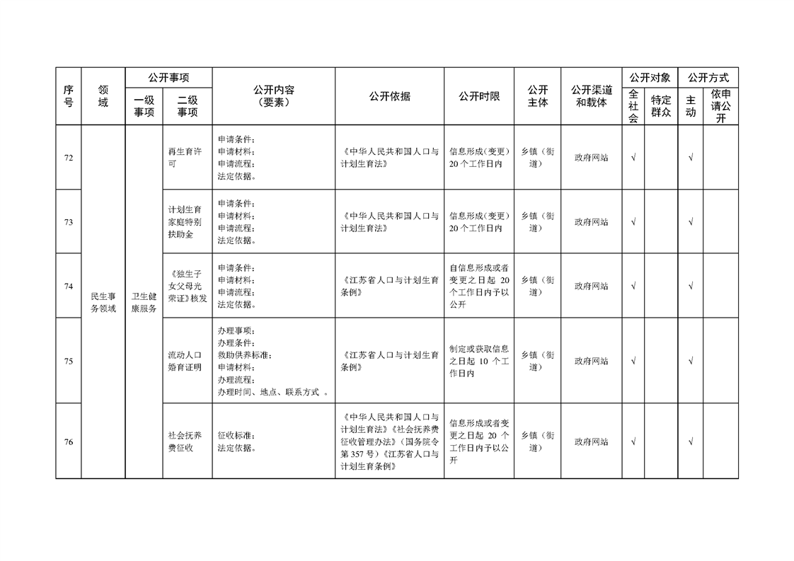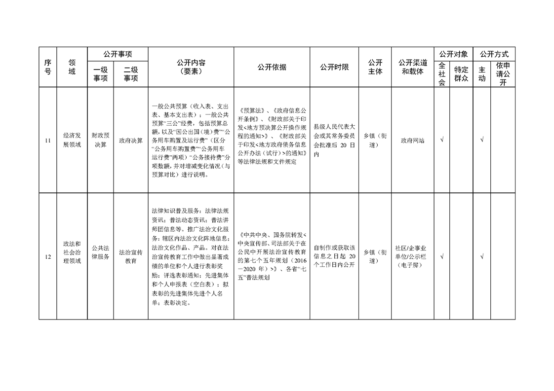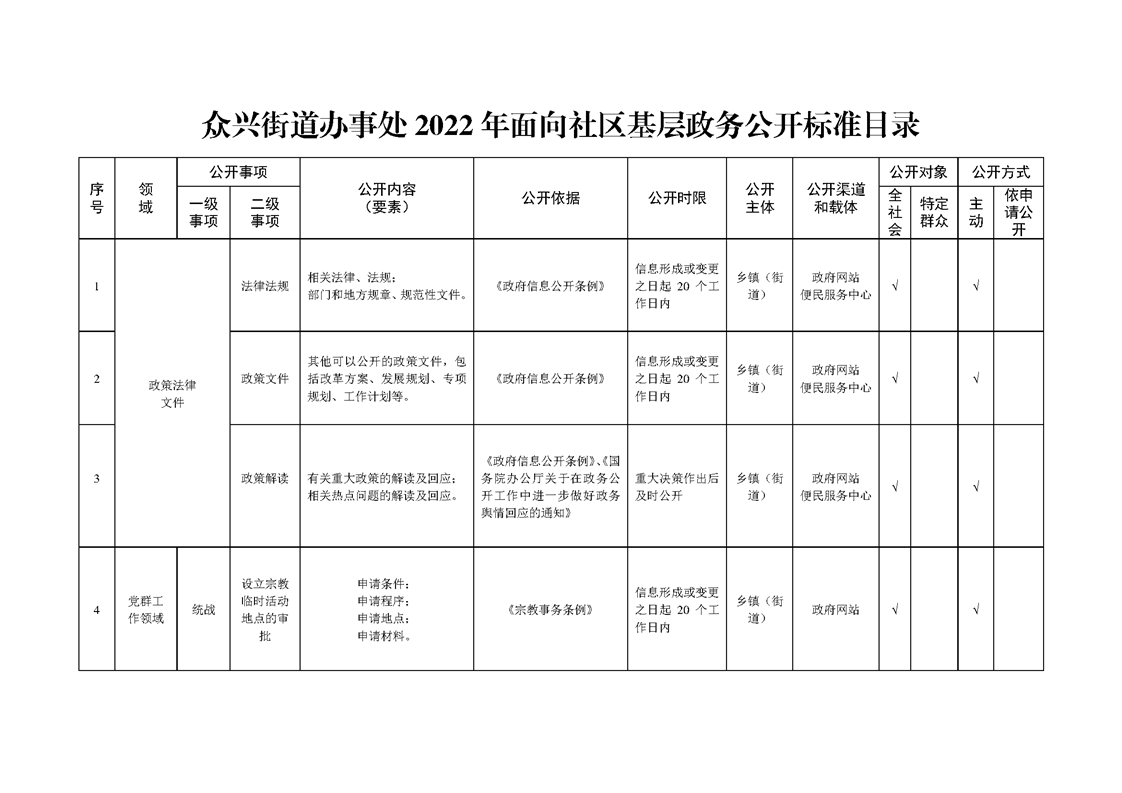 眾興街道辦事處2022年面向村居基層政務公開標準目錄
