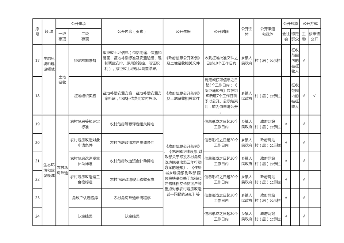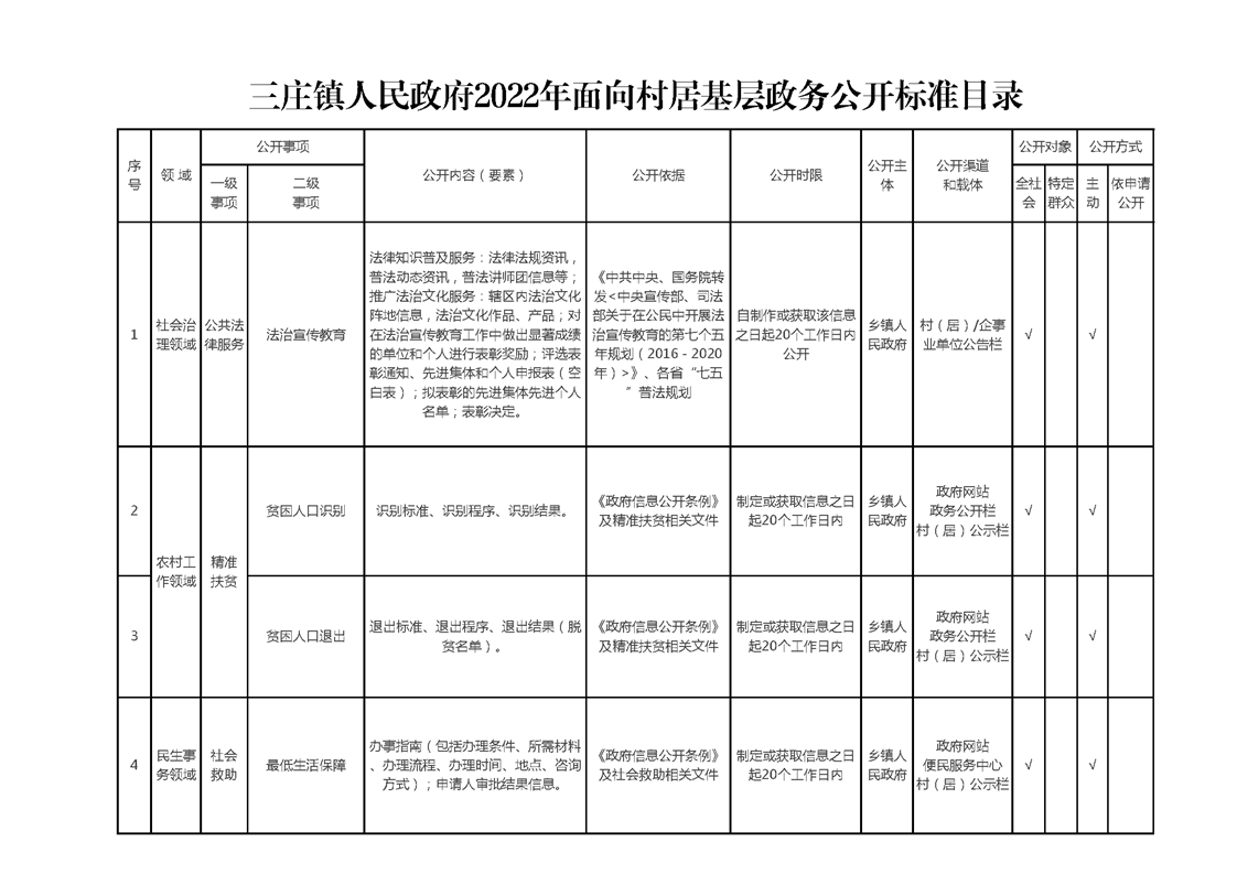 三莊鎮(zhèn)人民政府2022年面向村居基層政務公開標準目錄