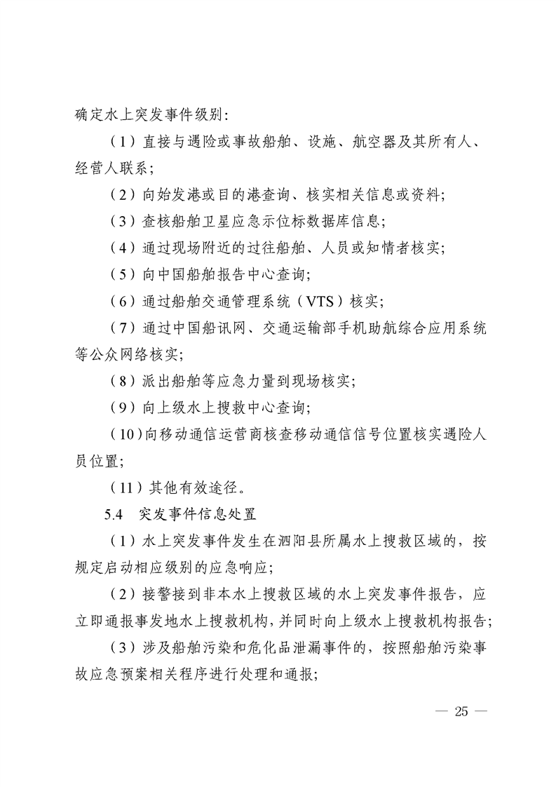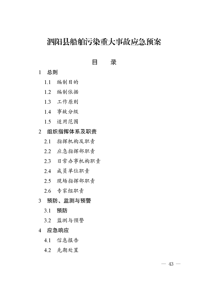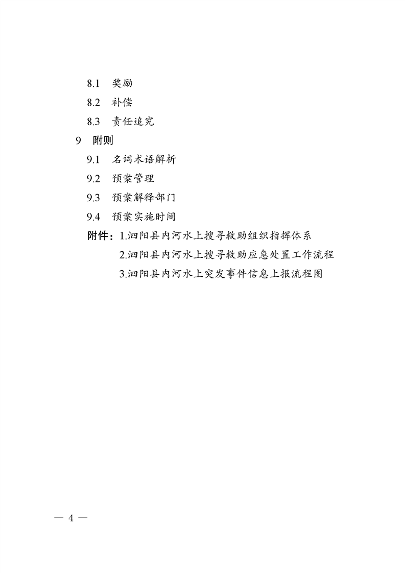 縣人民政府辦公室關于印發《泗陽縣內河水上搜尋救助應急預案》《泗陽縣船舶污染重大事故應急預案》的通知