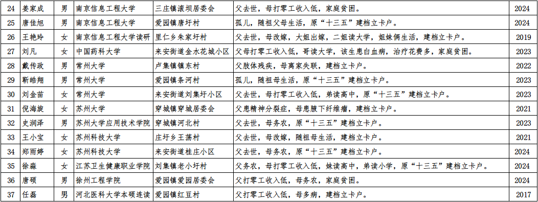 為更好的幫助經(jīng)濟困難學生圓夢大學,幫助他們解決上學過程中遇到的經(jīng)濟困難,經(jīng)基金會集體研究,決定對王其廣等37名經(jīng)濟困難大學生予以跟蹤資助,其中36每人跟蹤資助3000元,任磊同學是捐款人定向捐助,跟蹤資助2000元,現(xiàn)將擬資助對象有關情況予以公示,歡迎社會各界監(jiān)督。